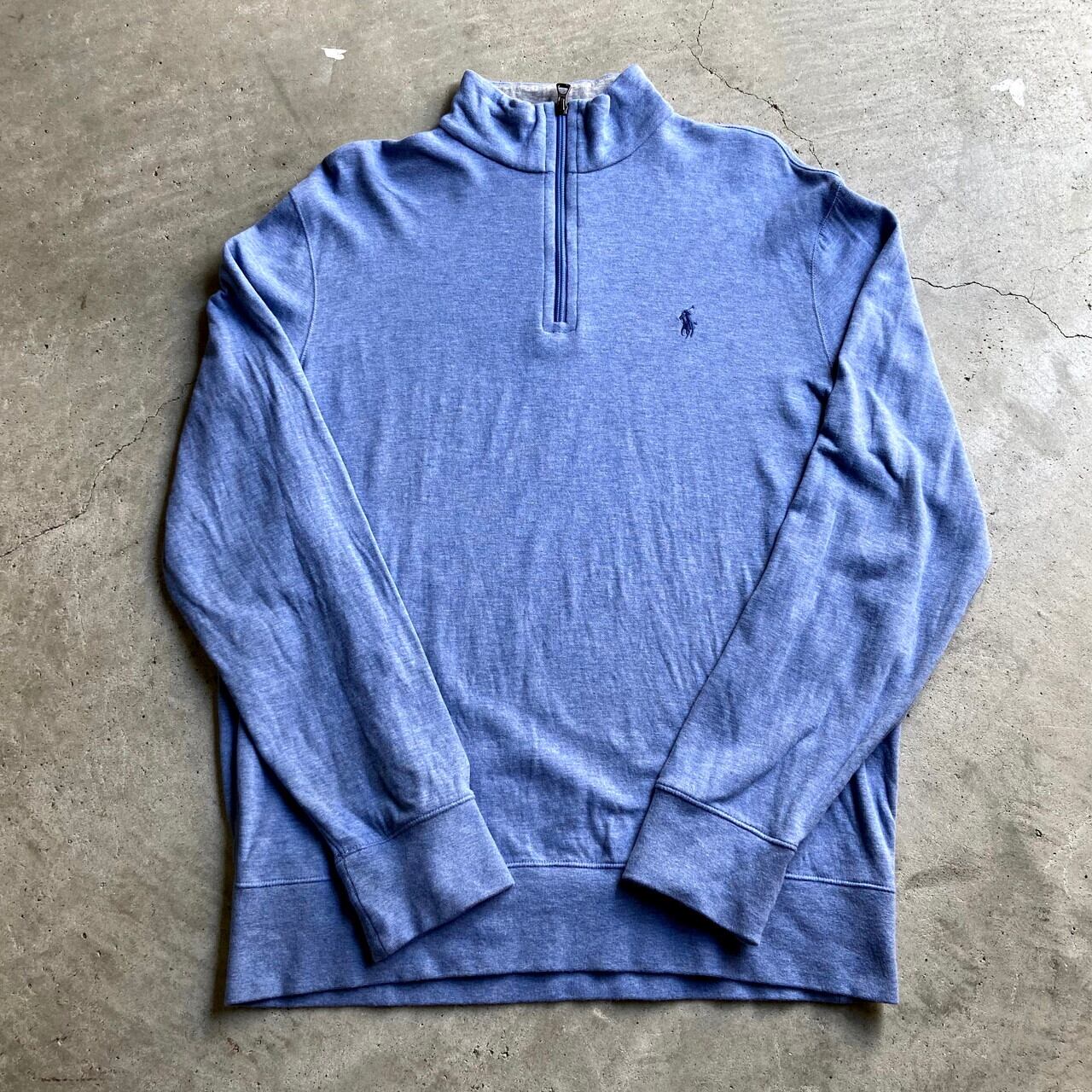 Polo Ralph Lauren ポロラルフローレン ワンポイントロゴ 刺繍 ハーフジップ スウェット メンズM相当 古着 ライトブルー 水色【スウェット】