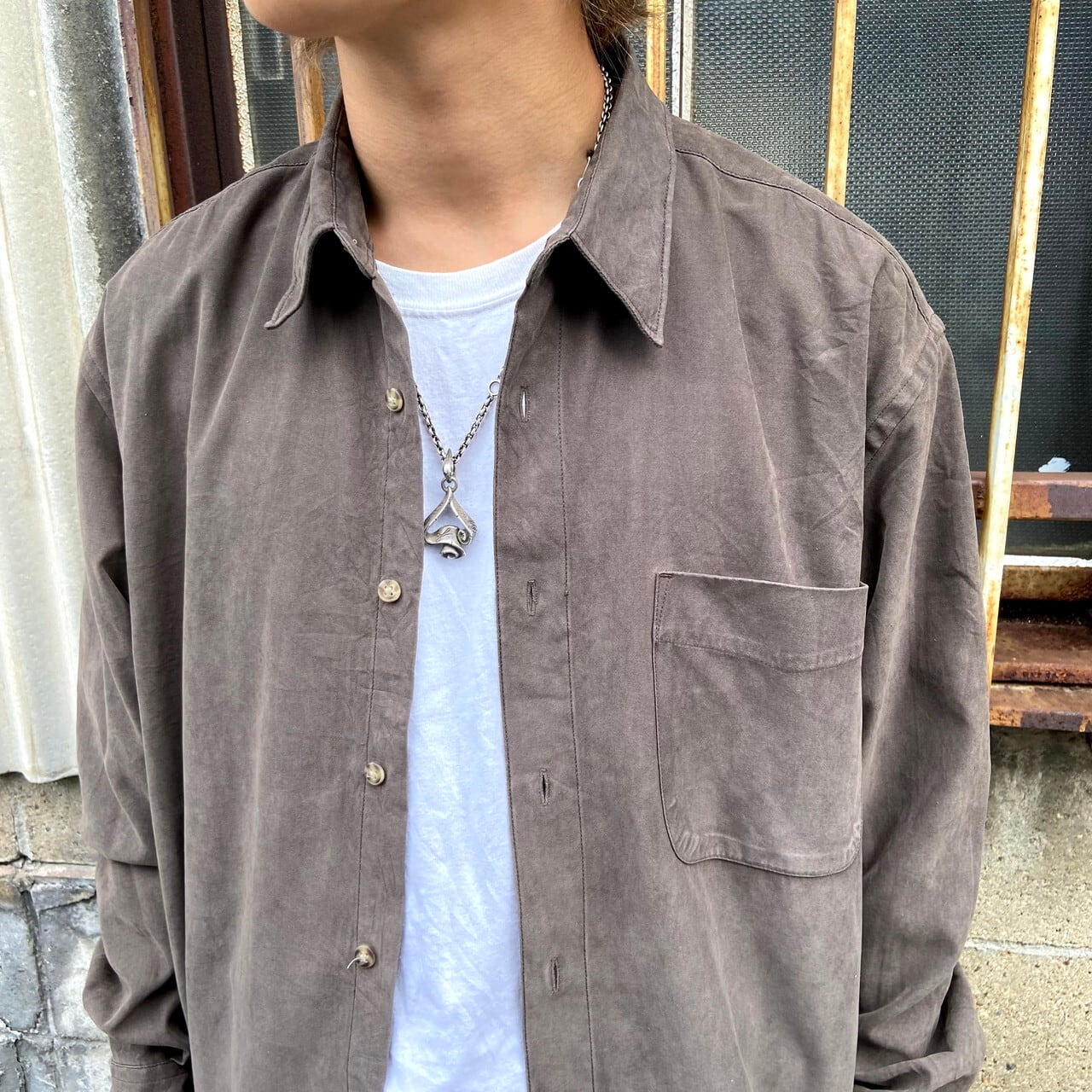 ■JOHN HENRY 長袖 フェイクスエードシャツ メンズL 古着 チャコールグレー 灰色【長袖シャツ】