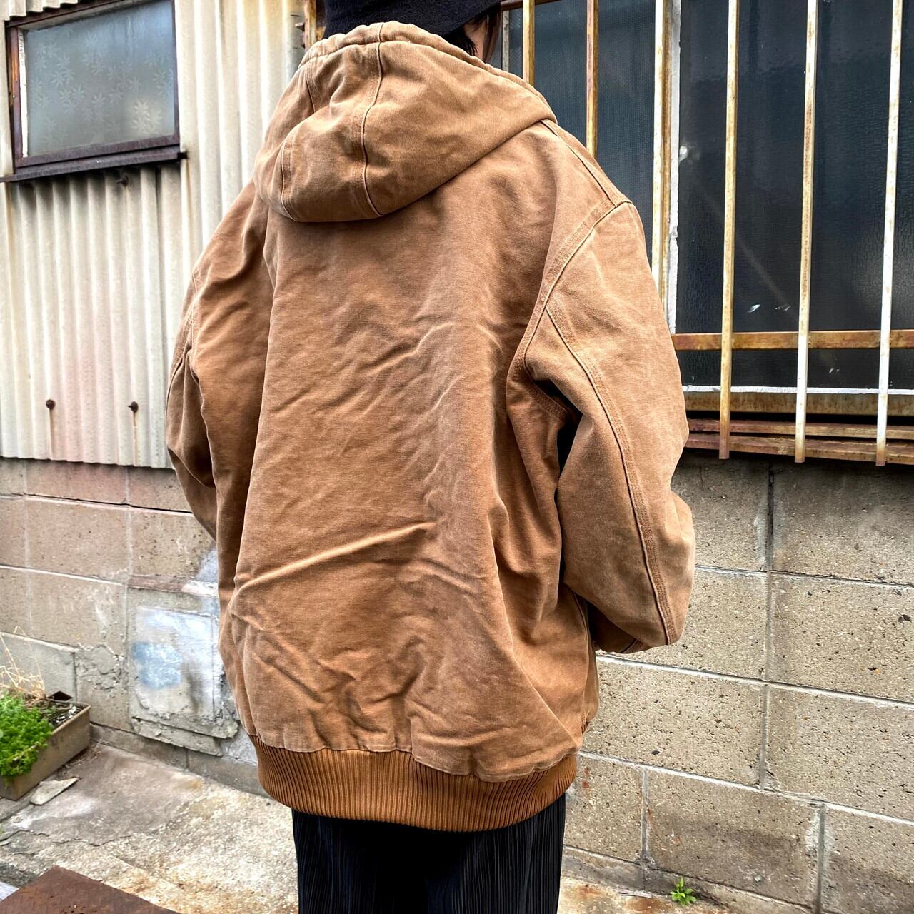 ■ビッグサイズ カーハート アクティブパーカー ワークジャケット メンズ2XL相当 古着 フルジップパーカー キルティングライナー Carhartt ダック地 ブラウン キャメル 茶色 大きいサイズ 【ワークジャケット】