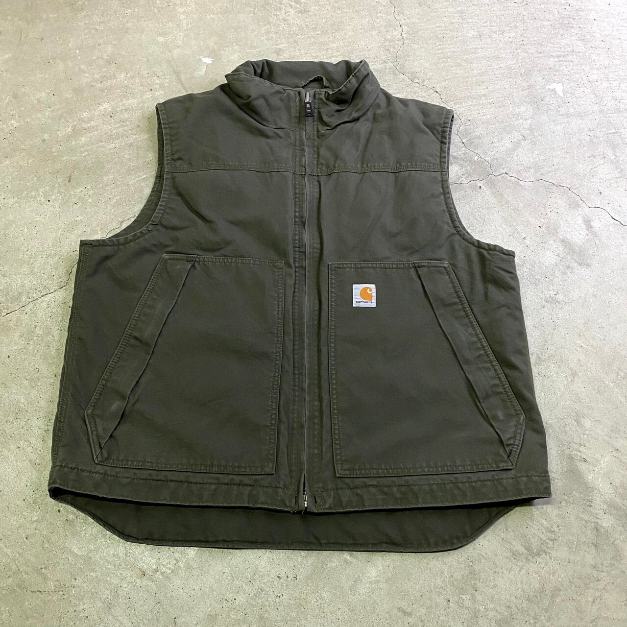 Carhartt カーハート Quick Duck クイックダック コットン ベスト キルティングライナー メンズXL相当 古着 モスグリーン 緑【ワークジャケット】