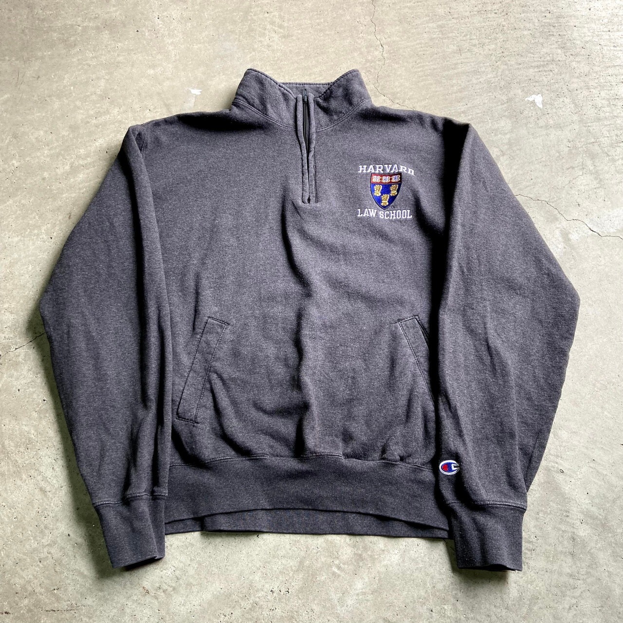 ■Champion チャンピオン ワンポイント カレッジ 刺繍 ワッペン ロゴ ハーフジップスウェット トレーナー メンズXL 古着 グレー 【スウェット】