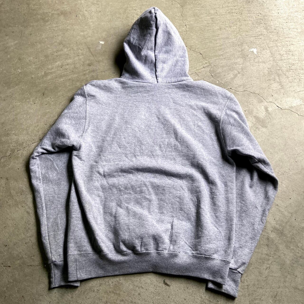 ■Champion チャンピオン ADELPHI カレッジチームロゴ プリント プルオーバーパーカー メンズXL 古着 スウェットパーカー 灰色 ライトグレー 【パーカー】