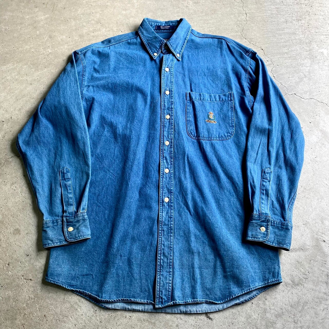 ■90年代 CHAPS Ralph Lauren チャップス ラルフローレン 長袖 デニムシャツ メンズM 古着 90s ボタンダウンシャツ B.Dシャツ 【長袖シャツ】