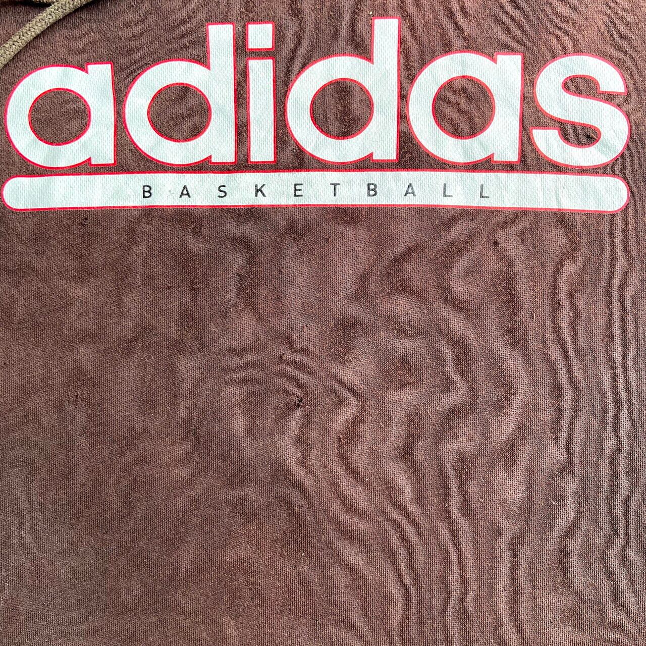 adidas アディダス BASKETBALL ブリーチ加工 フロントロゴプリント スウェットパーカー メンズL 古着 ブラウン 赤茶色【パーカー】【WS2201】