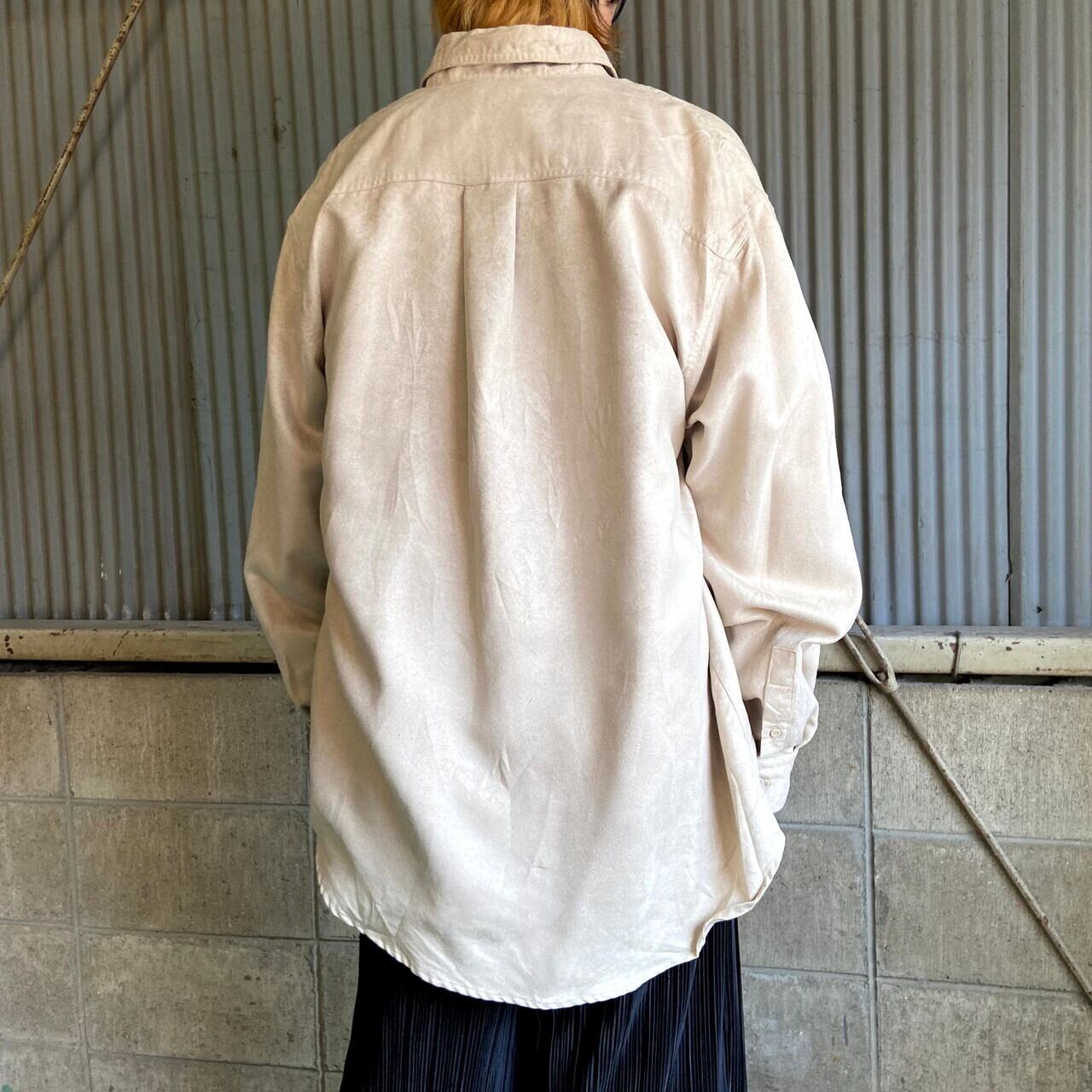 KNIGHTS BRIDGE 長袖 フェイクスエードシャツ メンズL相当 古着 ベージュ【長袖シャツ】【WS2202-50】