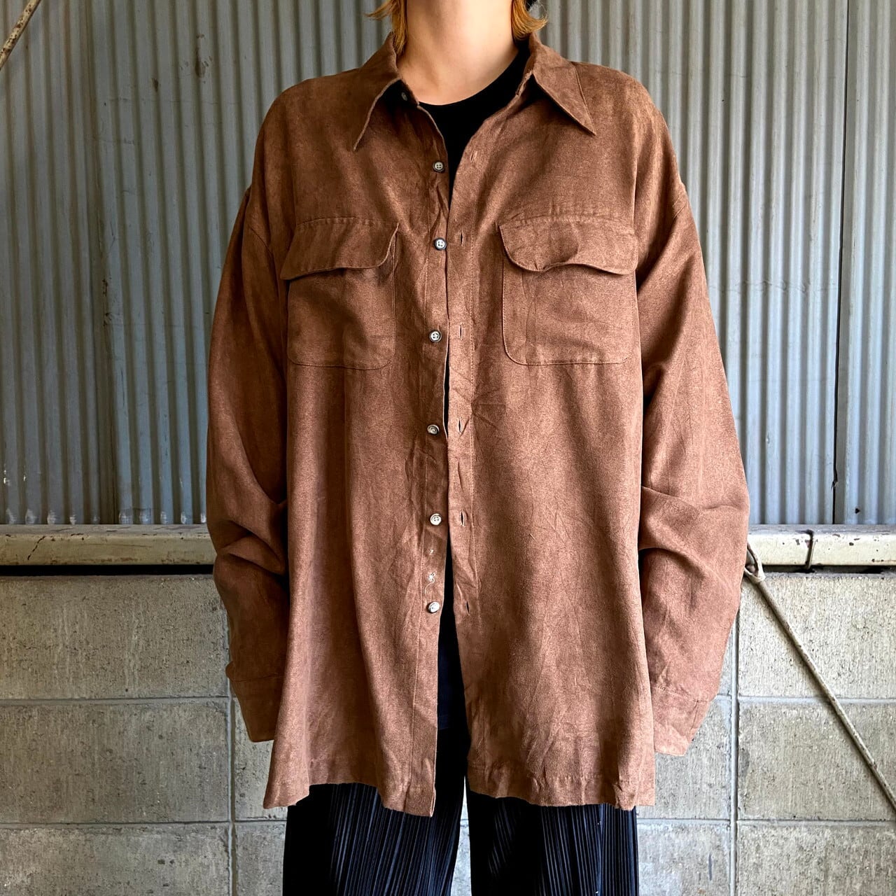 ■ビッグサイズ VANHEUSEN 長袖 フェイクスエードシャツ メンズ2XL相当 古着 ブラウン 茶色 大きいサイズ【長袖シャツ】