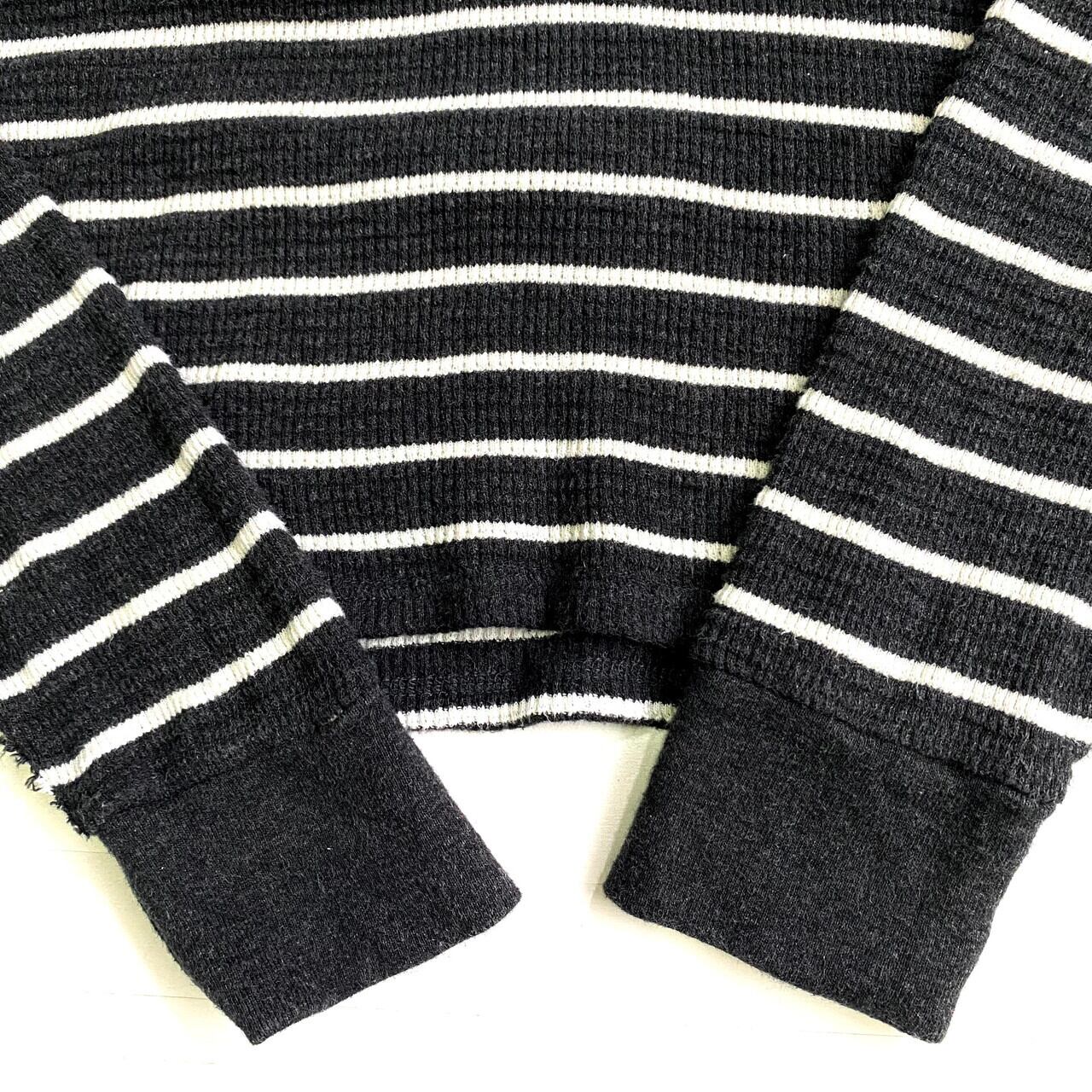 Polo by Ralph Lauren ポロバイラルフローレン ワンポイントロゴ刺繍 ボーダー フーデッド サーマルロングTシャツ メンズM 古着 ワッフル地 プルオーバーパーカー ロンT グレー【ロングTシャツ】【AL2109】