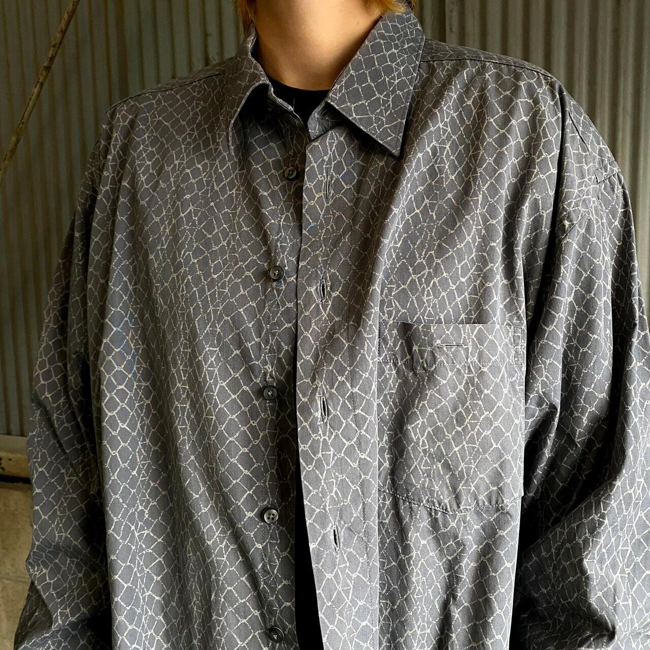 ビッグサイズ CASA MODA ユーロブランド 長袖 パイソン柄 コットン 総柄シャツ メンズXXL 古着 グレー 灰色 大きいサイズ 【長袖シャツ】【CS2209-50】