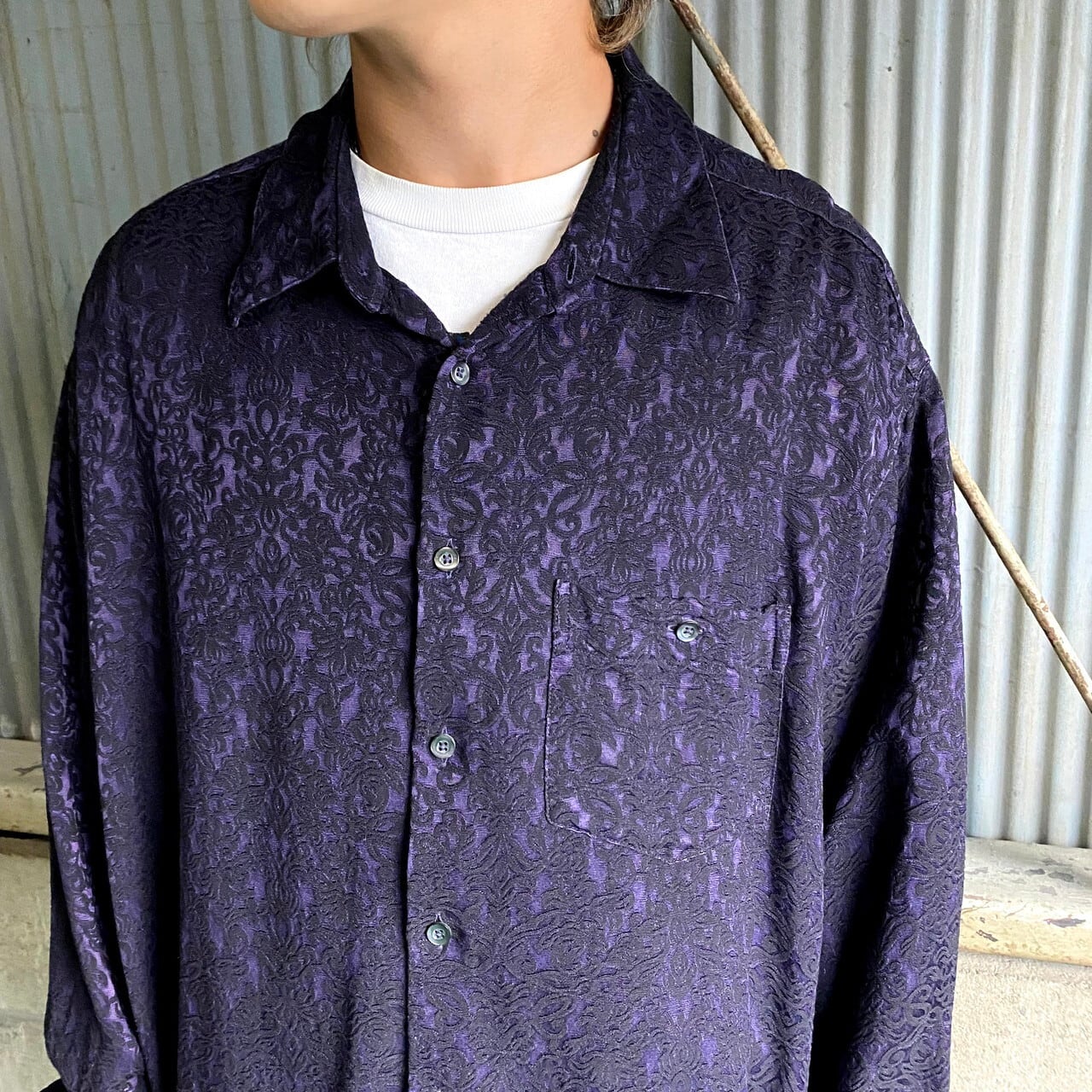 ビッグサイズ BERTONE ユーロブランド レーヨン×キュプラ アールヌーヴォー ボタニカル 長袖 総柄シャツ メンズ2XL 古着 パープル ブラック 紫色 黒 大きいサイズ【長袖シャツ】【WS2202-15】