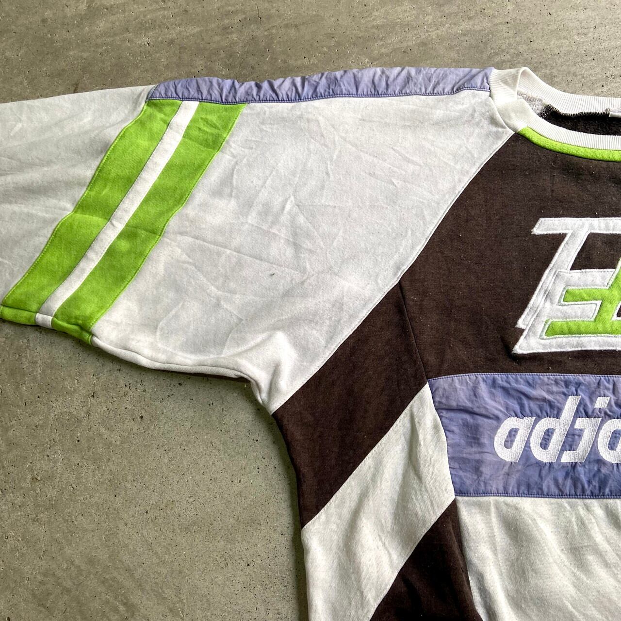 80年代 アディダス TEAM ロゴ刺繍 切替 スウェットシャツ メンズXL相当 古着 80S ヴィンテージ ビンテージ adidas トレーナー ホワイト ブラック 白 黒 【スウェット】