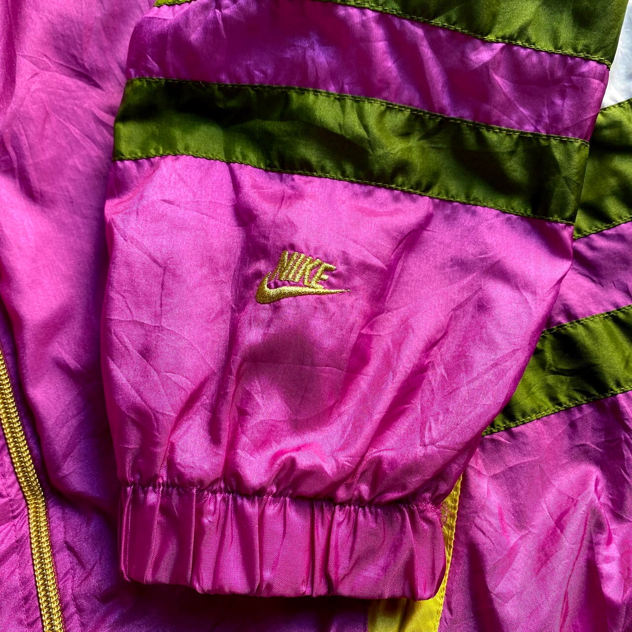 ■ビッグサイズ 90年代 NIKE INTERNATIONAL ナイキ クレイジーカラー ナイロンジャケット メンズ2XL相当 古着 90s ヴィンテージ ビンテージ 切り替え パープル×イエロー×グリーン ロゴ刺繍 大きいサイズ【ナイロンジャケット】