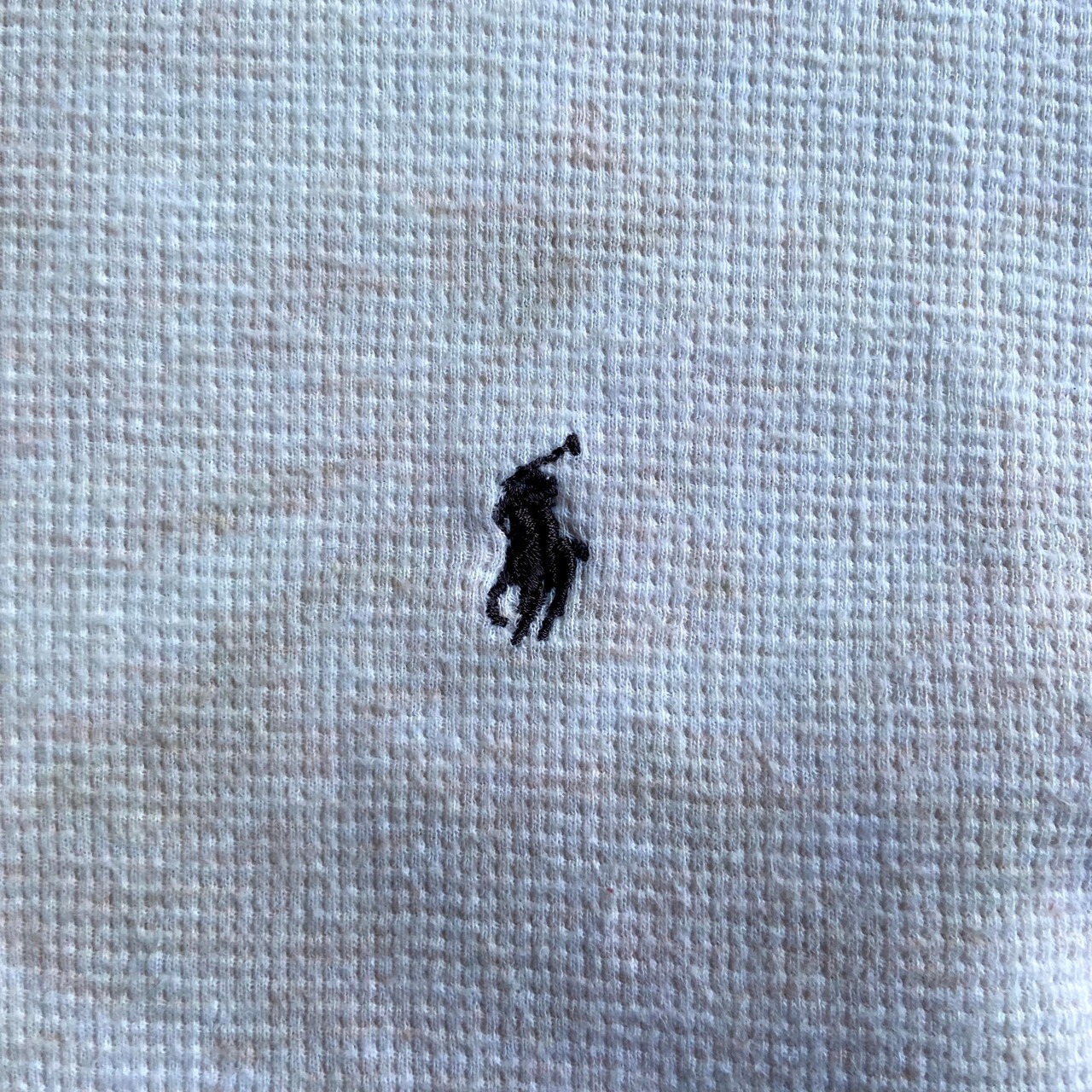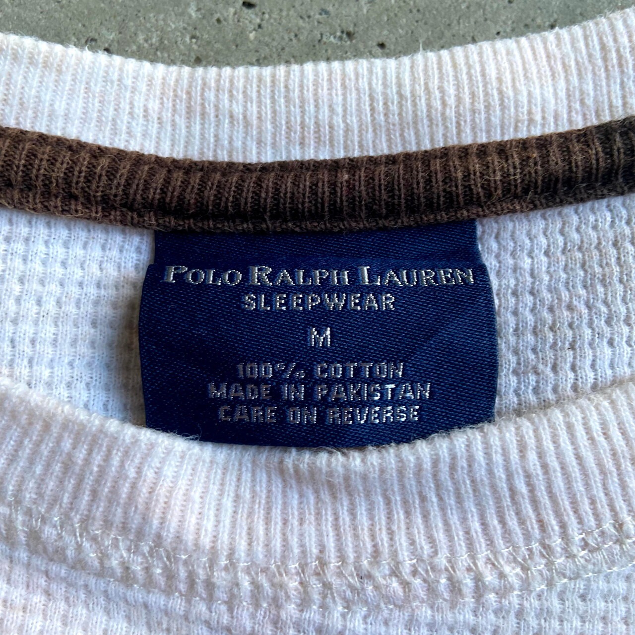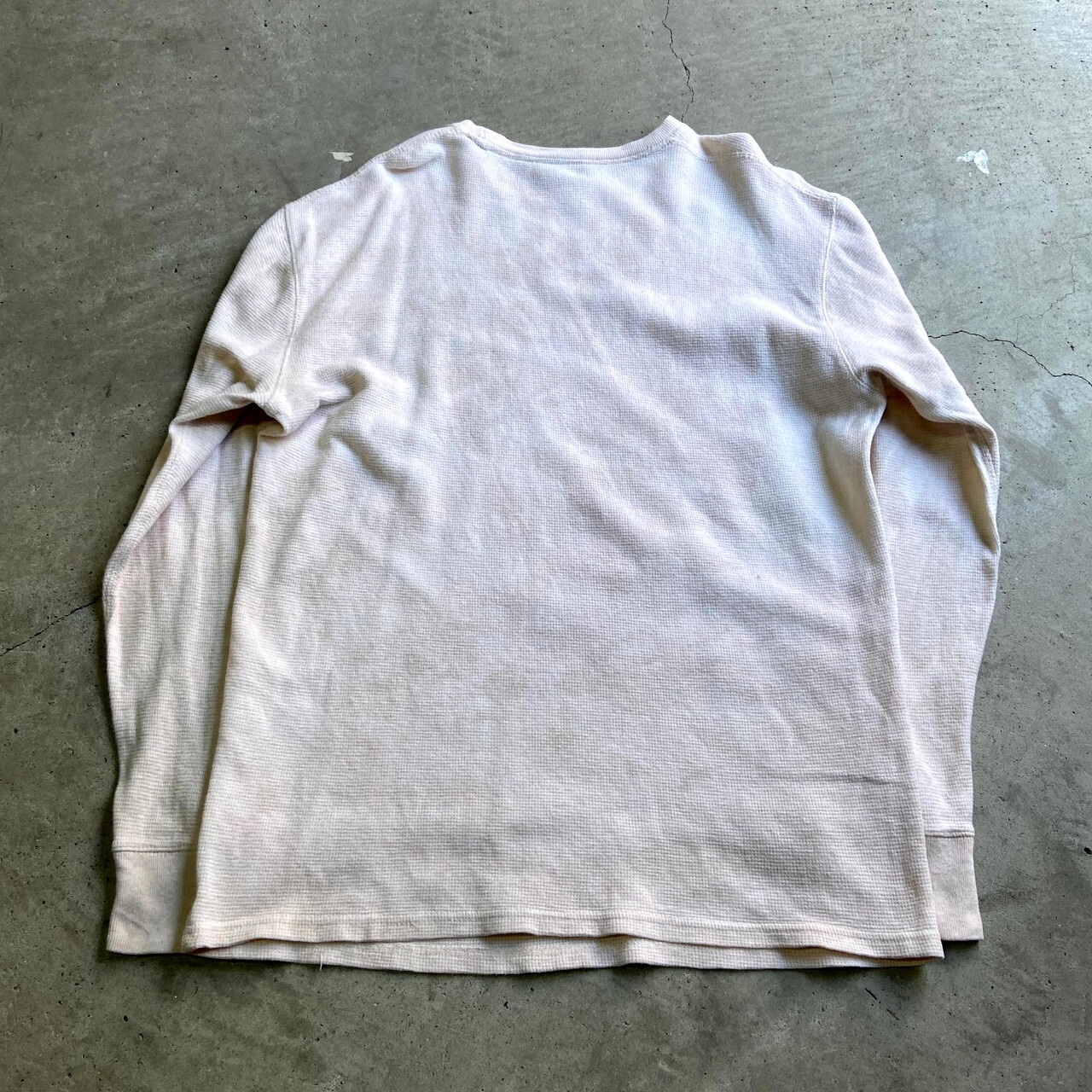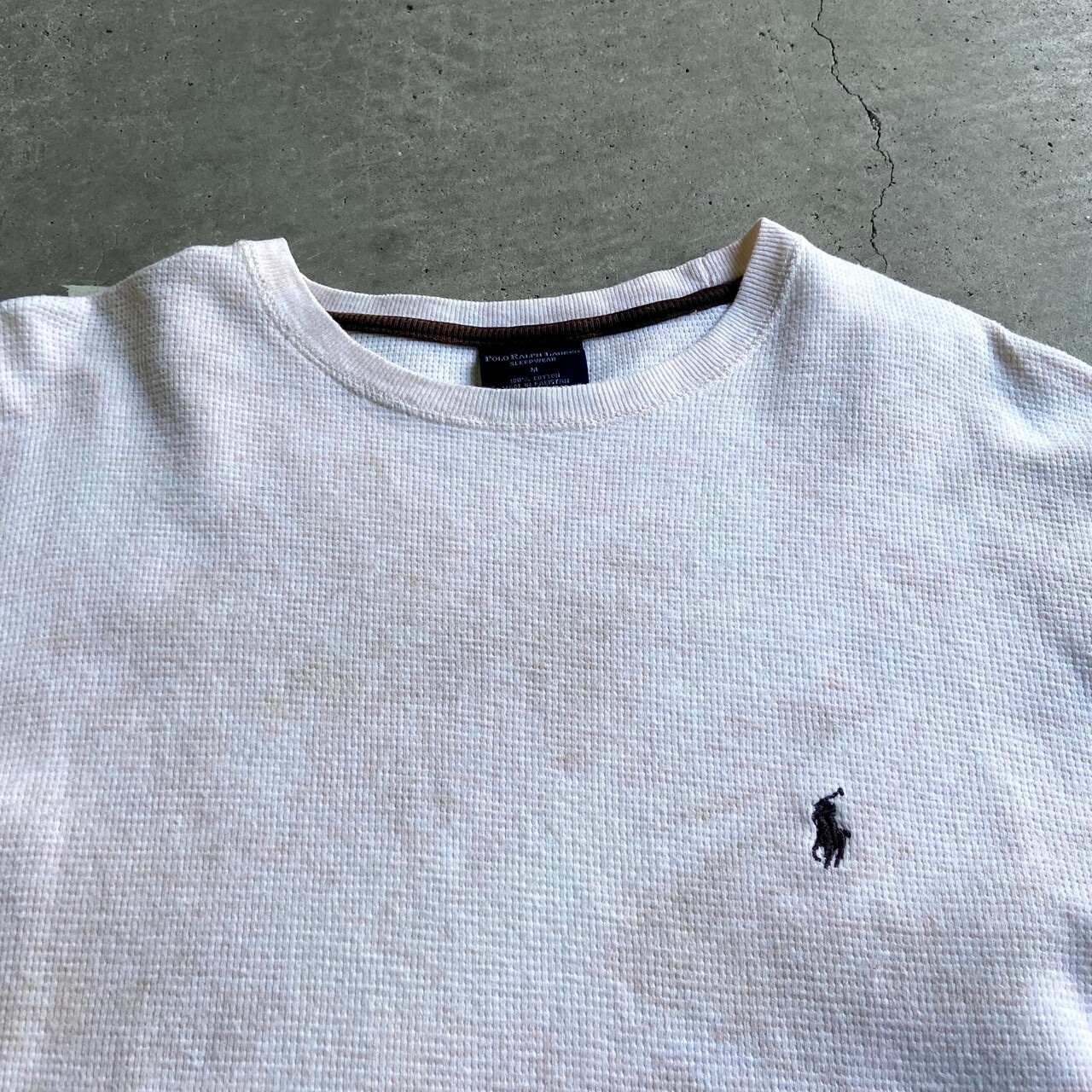 ■POLO RALPH LAUREN ラルフローレン ワンポイントロゴ サーマルロングTシャツ メンズM 古着 ワッフル地 ロンT ベージュ ブリーチ【ロングTシャツ】