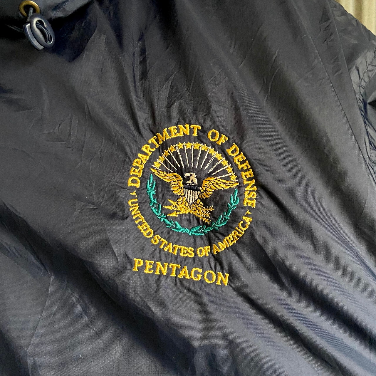 ■ビッグサイズ 00年代 チャンピオン 胸ワンポイントロゴ刺繍 アメリカ国防総省 ハーフジップ プルオーバー ナイロンジャケット メンズ2XL相当 古着 ネイビー 紺 大きいサイズ 00s ヴィンテージ ビンテージ【ナイロンジャケット】
