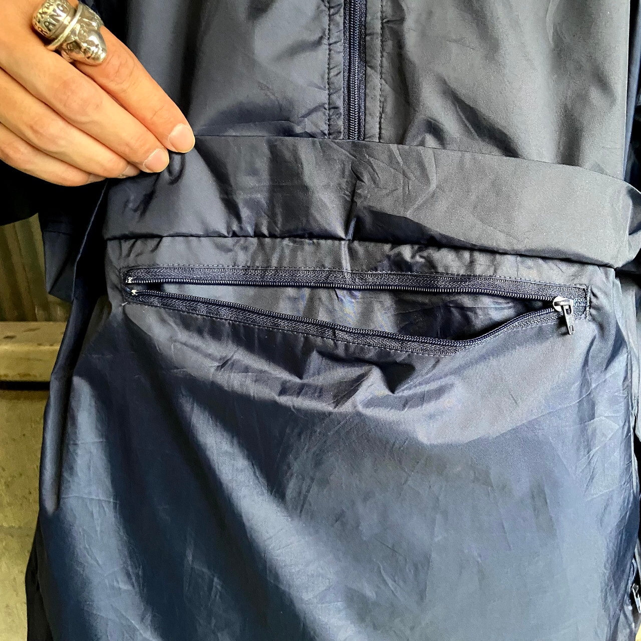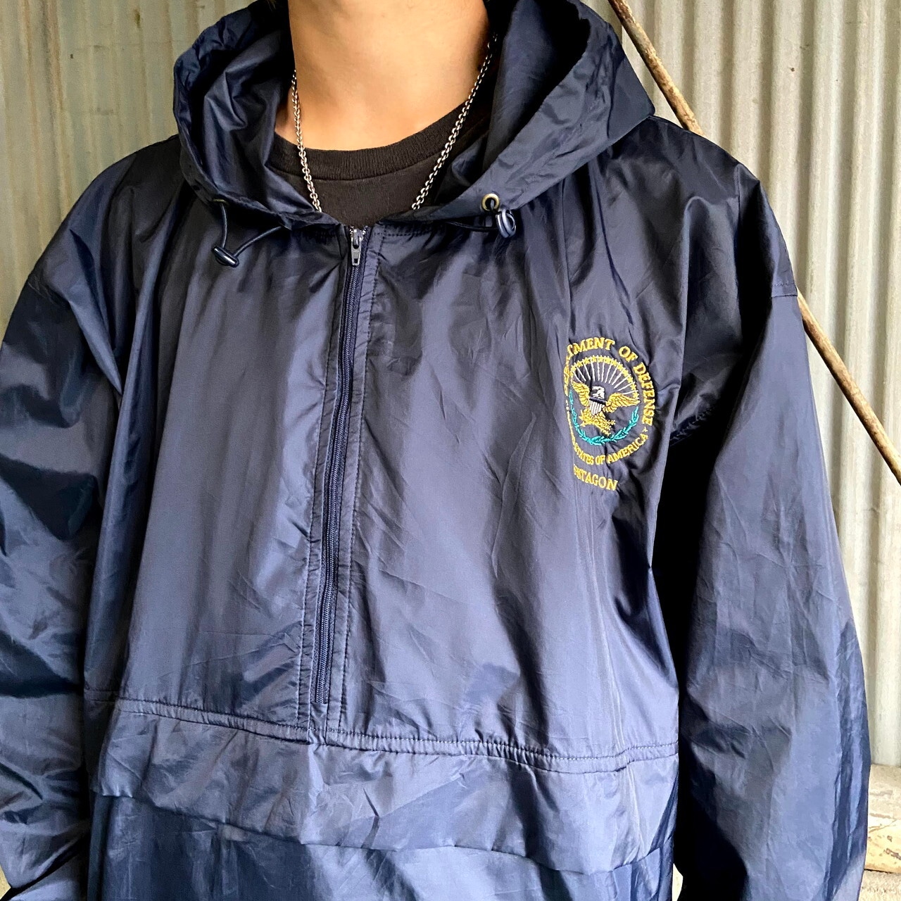 ビッグサイズ 00年代 チャンピオン 胸ワンポイントロゴ刺繍 アメリカ国防総省 ハーフジップ プルオーバー ナイロンジャケット メンズ2XL相当 古着 アノラック ネイビー 紺 大きいサイズ 00s ヴィンテージ ビンテージ【ナイロンジャケット】【AL2110】