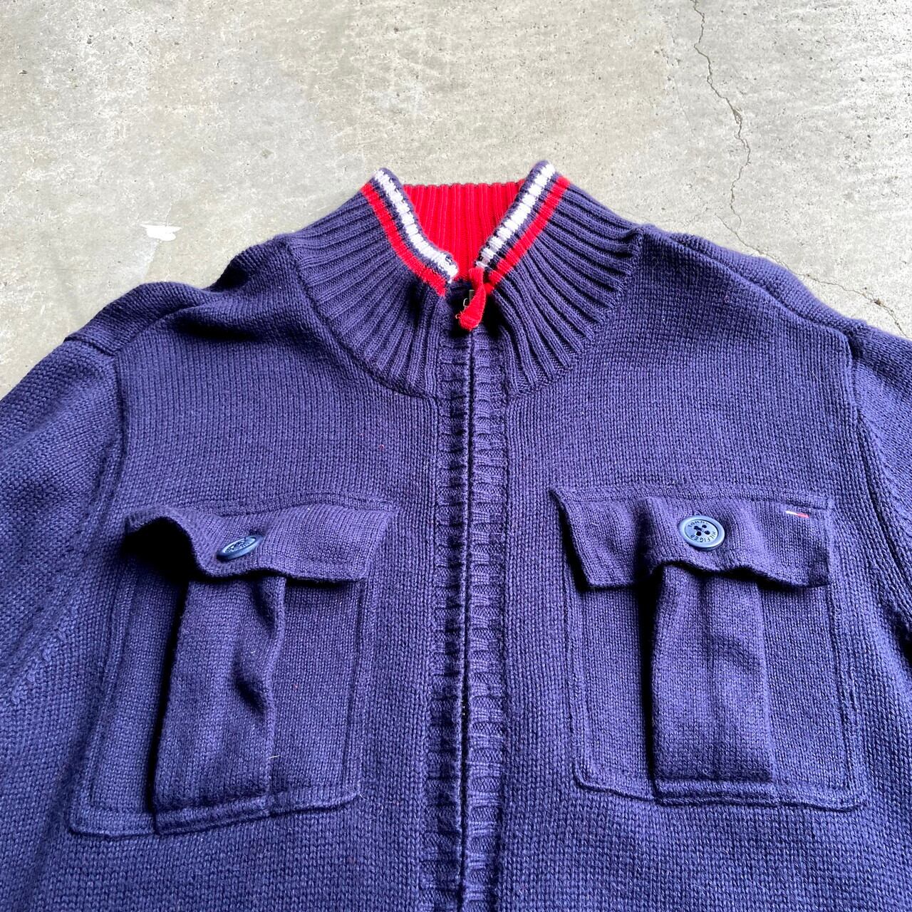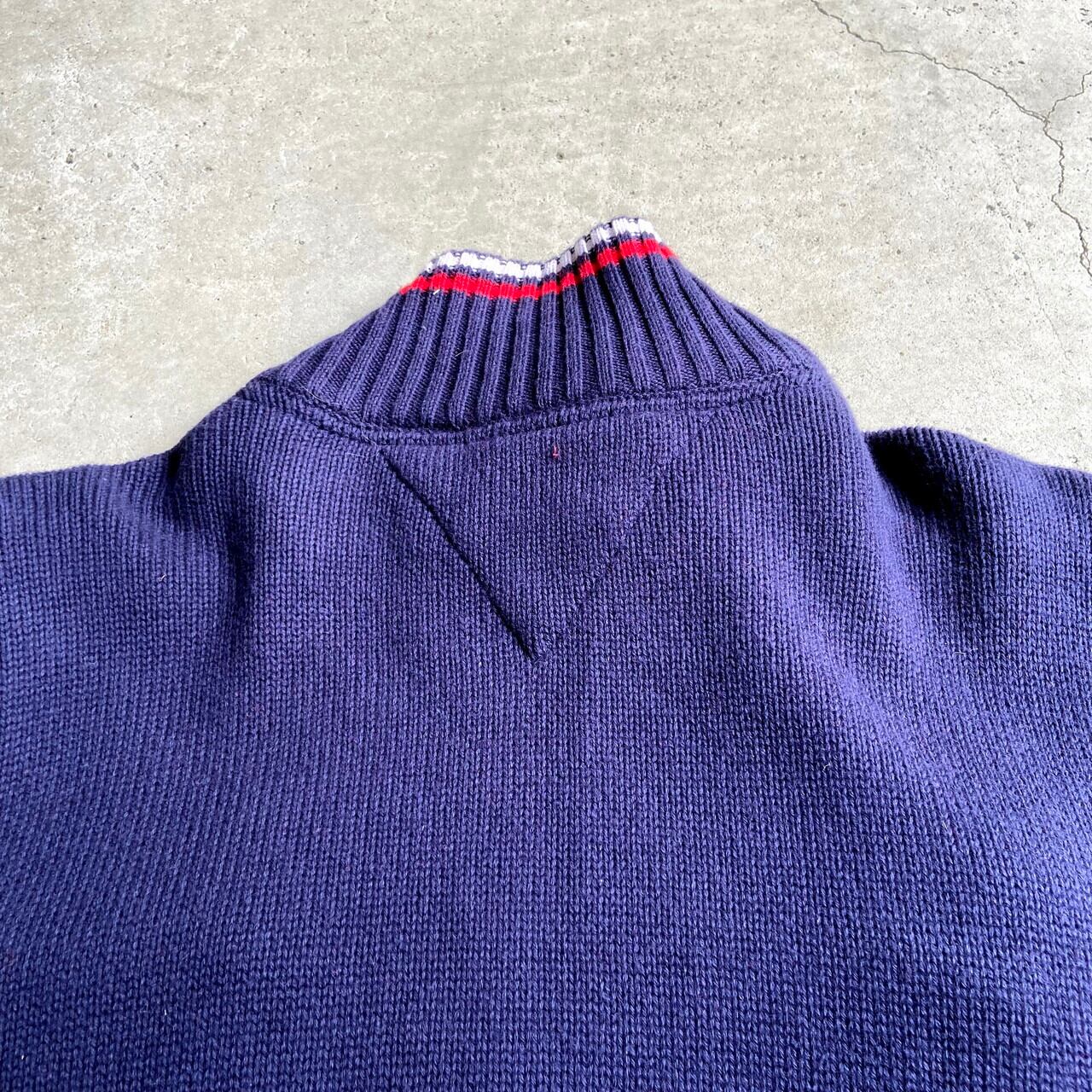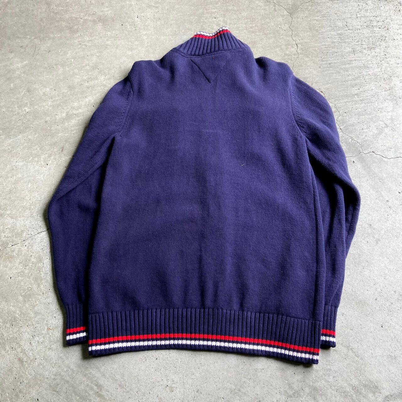 TOMMY HILFIGER トミーヒルフィガー フルジップ ハイネック ワッペン コットンニットセーター メンズM相当 ネイビー 紺【ニットセーター】【SS2401-50】