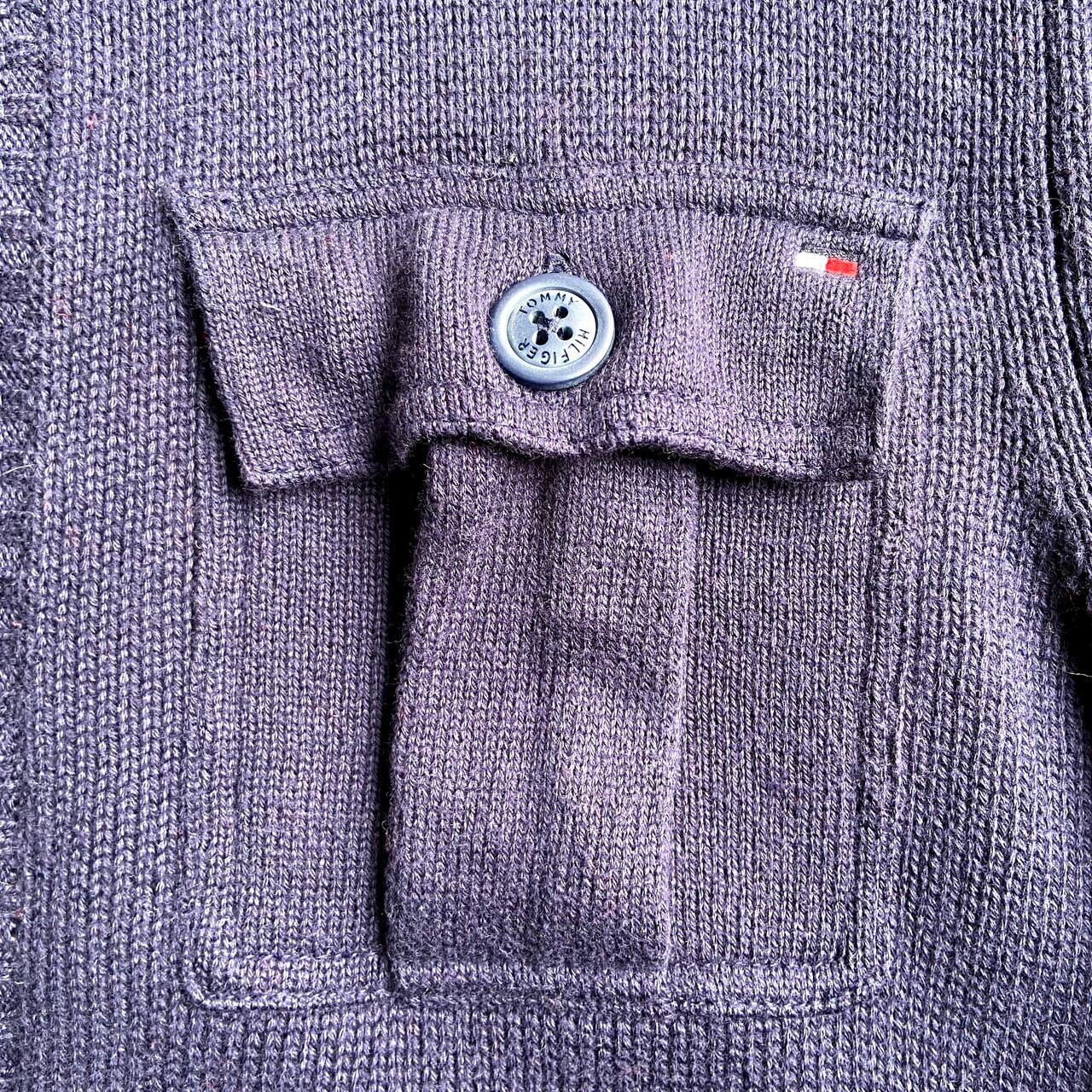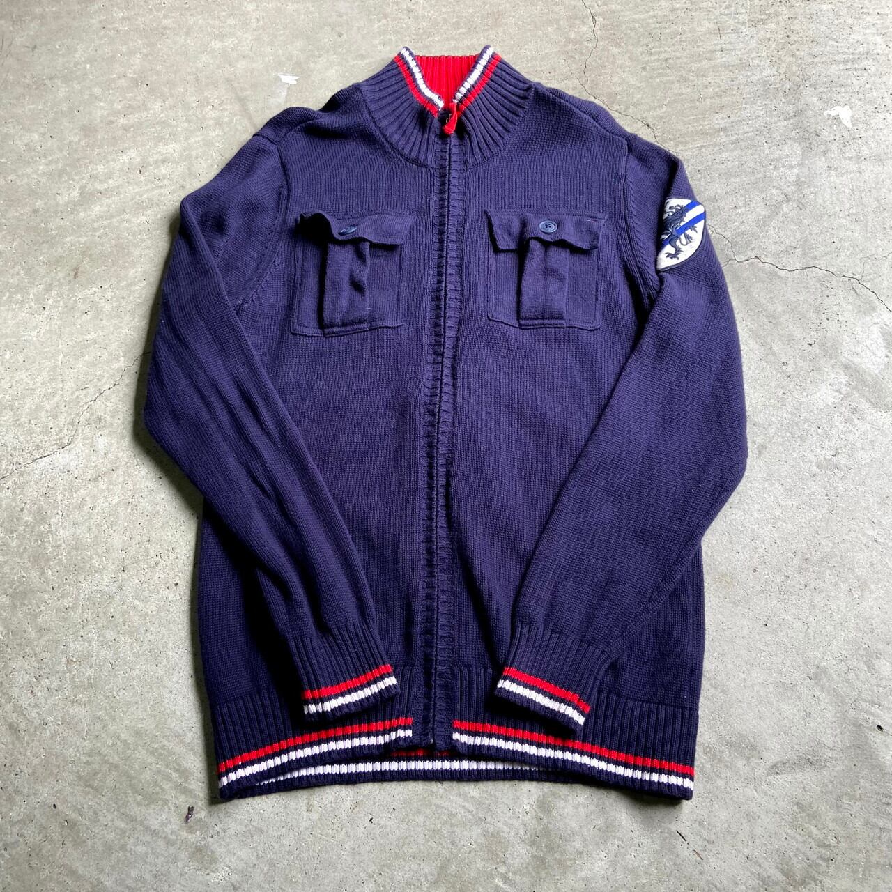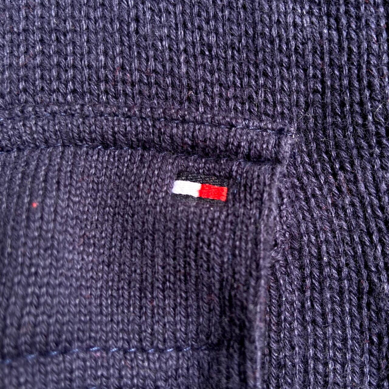 TOMMY HILFIGER トミーヒルフィガー フルジップ ハイネック ワッペン コットンニットセーター メンズM相当 ネイビー 紺【ニットセーター】【SS2401-50】