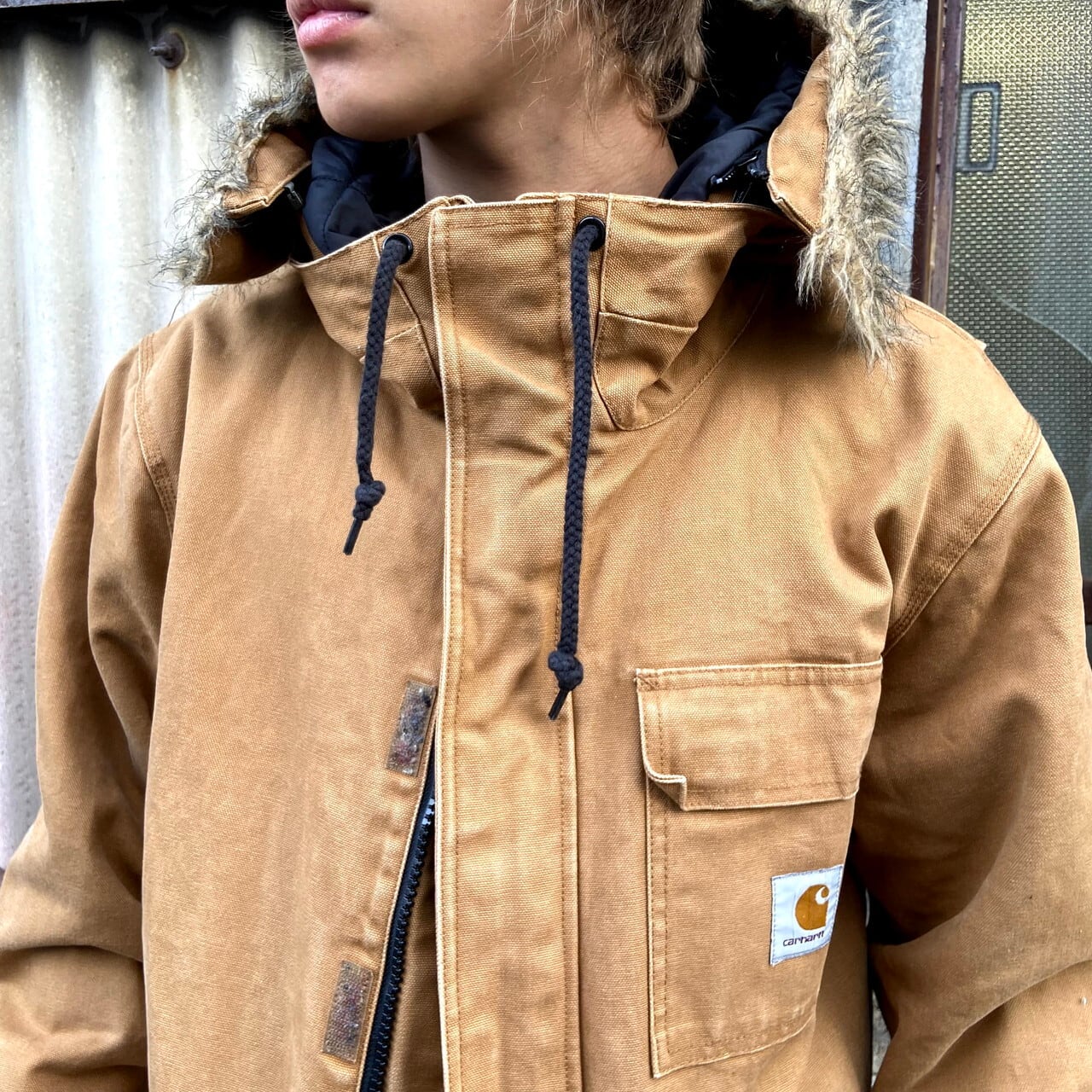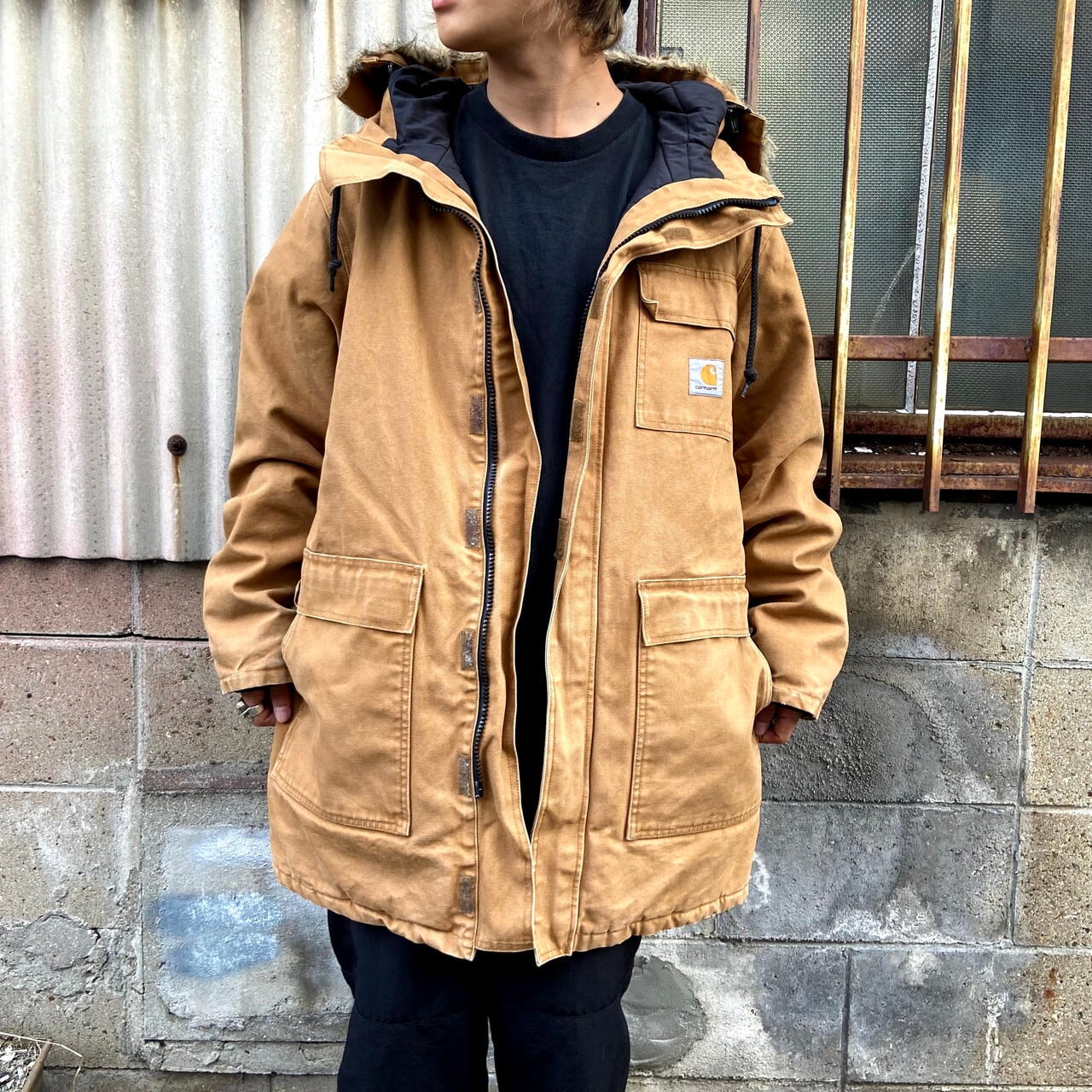 カーハート SIBERIAN PAKA シベリアンパーカー シンサレート ダック地 ワークジャケット メンズXL相当 古着 Carhartt 中綿入りキルティングライナー フェイクファー ブラウン 茶色 Thinsulate【ワークジャケット】【AL2110】