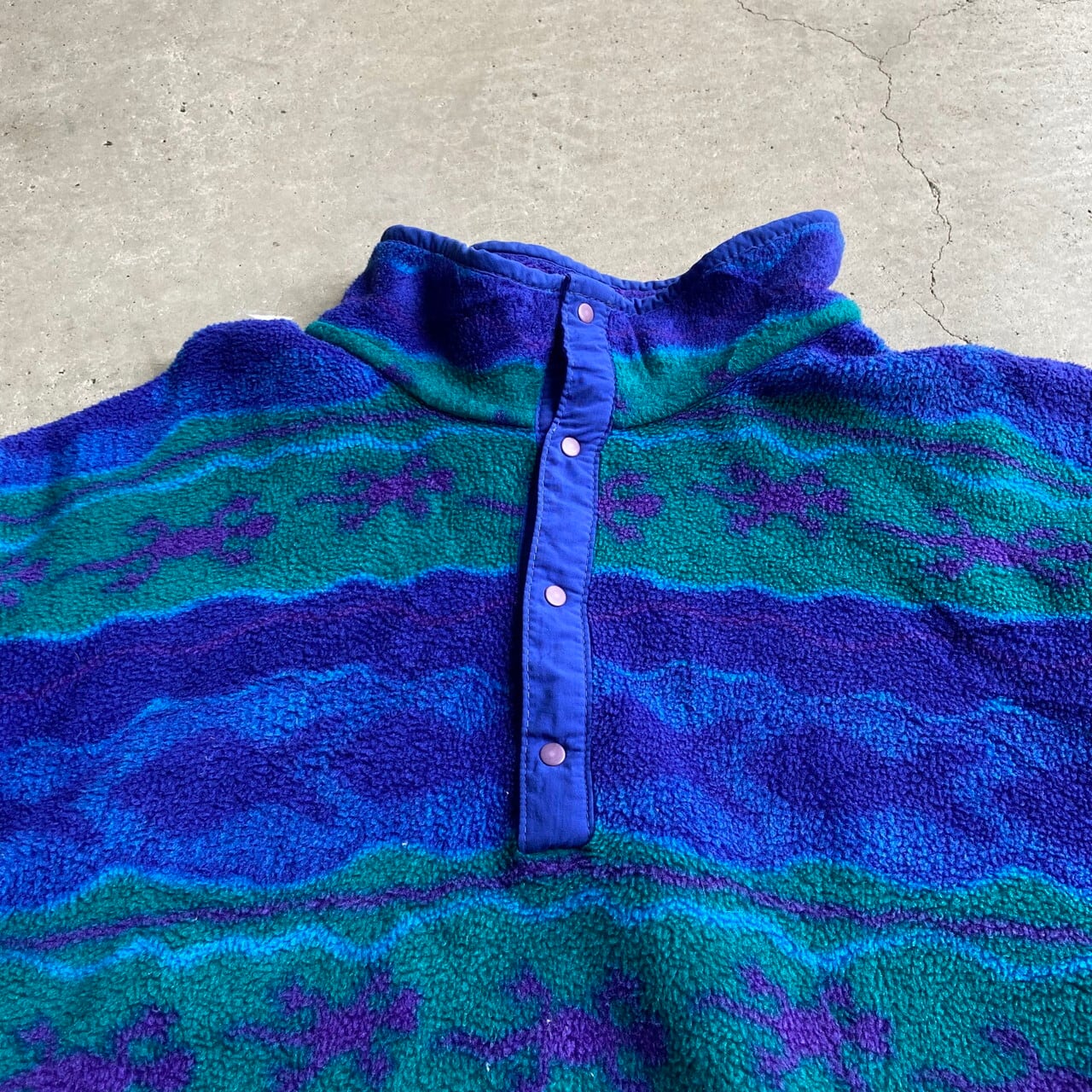 80年代 エルエルビーン トカゲ 魚 総柄 スナップT フリースプルオーバー メンズXL相当 古着 80S ビンテージ ヴィンテージ L.L.Bean【フリースジャケット】【AL2110】
