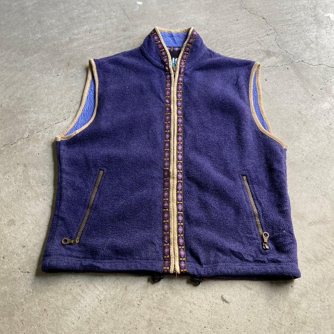90年代 USA製 alf アルフ チロリアンテープ フリースベスト メンズXL 古着 90s ビンテージ ヴィンテージ ririジップ POLATEC ポーラテック パープル 紫色 【フリースジャケット】【WS2201】-2