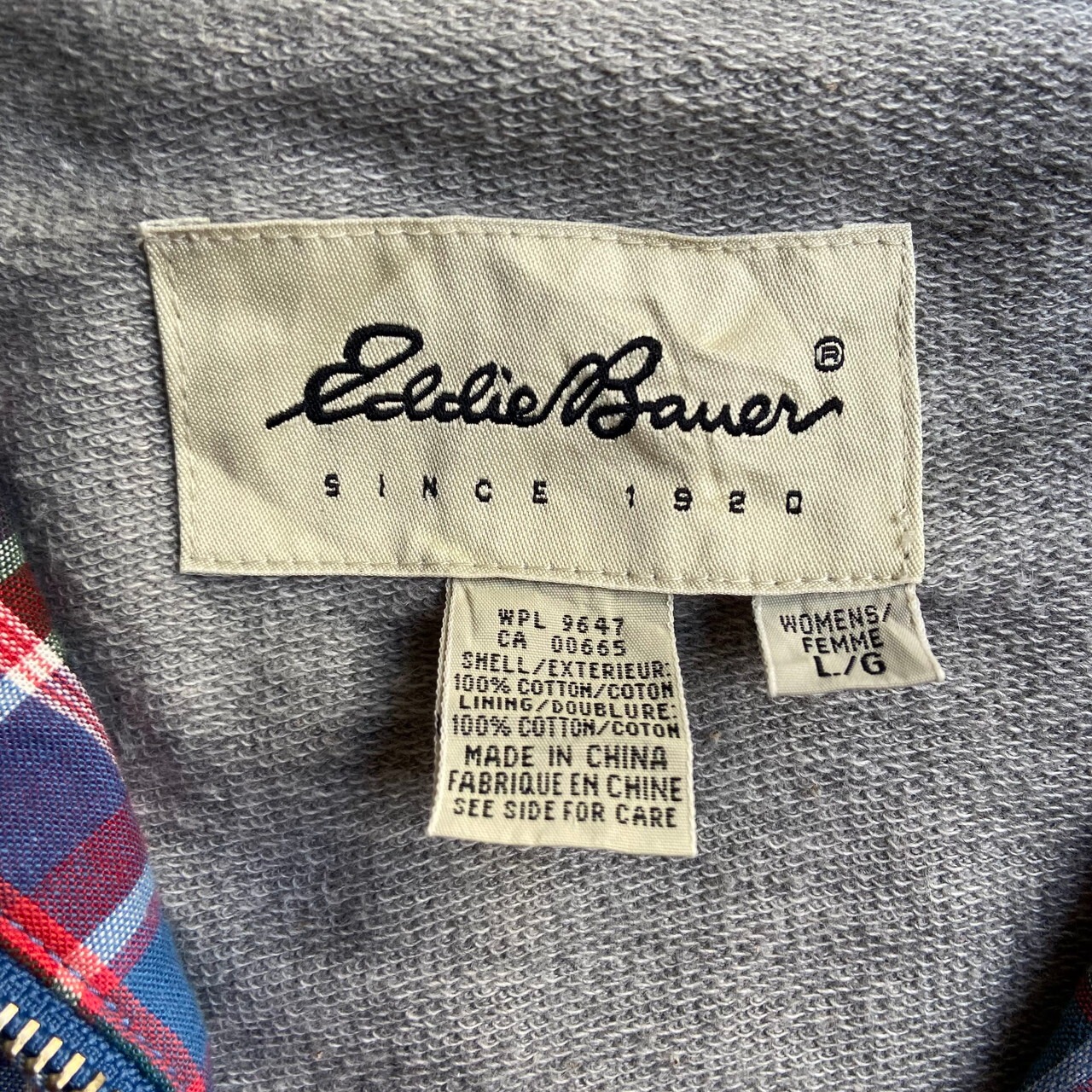 90年代 Eddie Bauer エディーバウアー チェック柄 コットンパーカー レディースL 古着 ブルー×レッド 青×赤 90s ヴィンテージ ビンテージ【パーカー】-2【WS2202-50】【SOL】