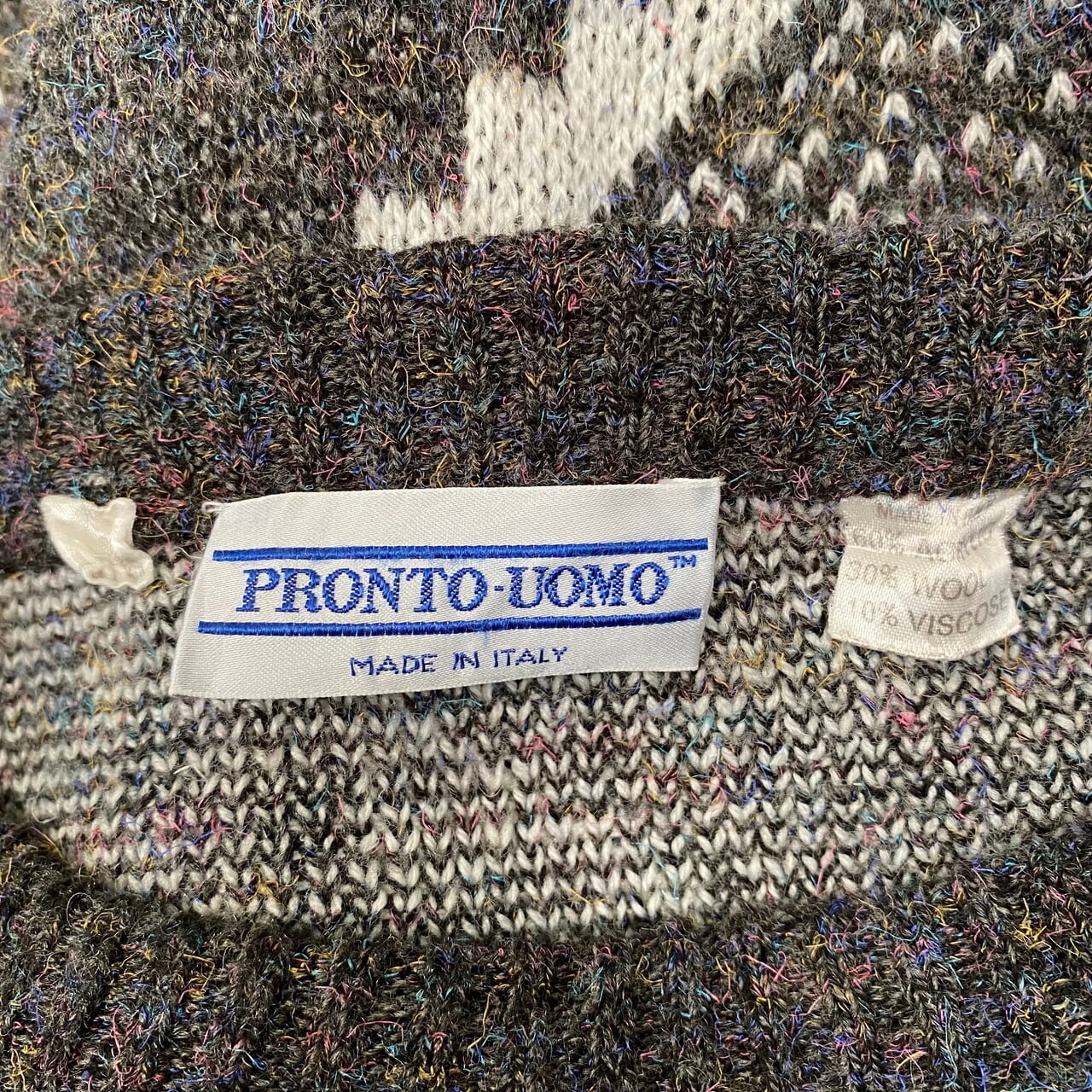 ■イタリア製 PRONTO UOMO 総柄 アクリル ウール ニットセーター 古着 メンズM ブラウン 茶【ニットセーター】