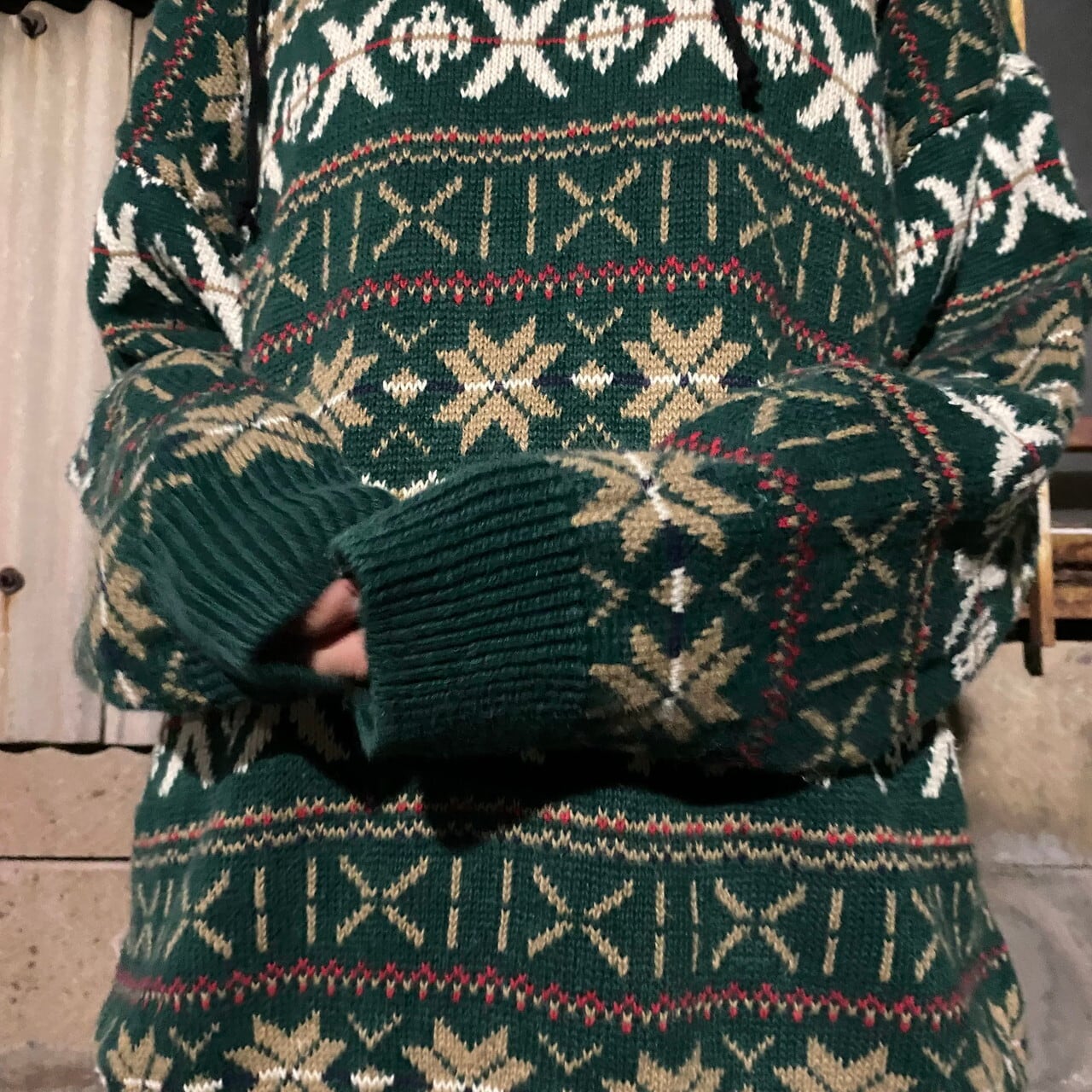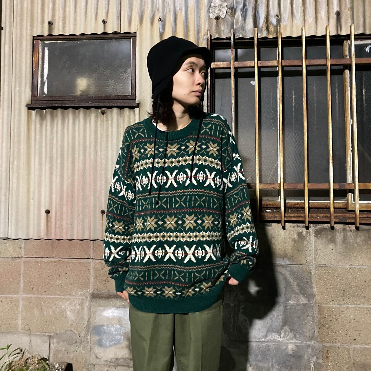 ■HONORS フェアアイル 総柄 ラミー×コットン ニットセーター メンズXL 古着 グリーン 緑 【ニットセーター】