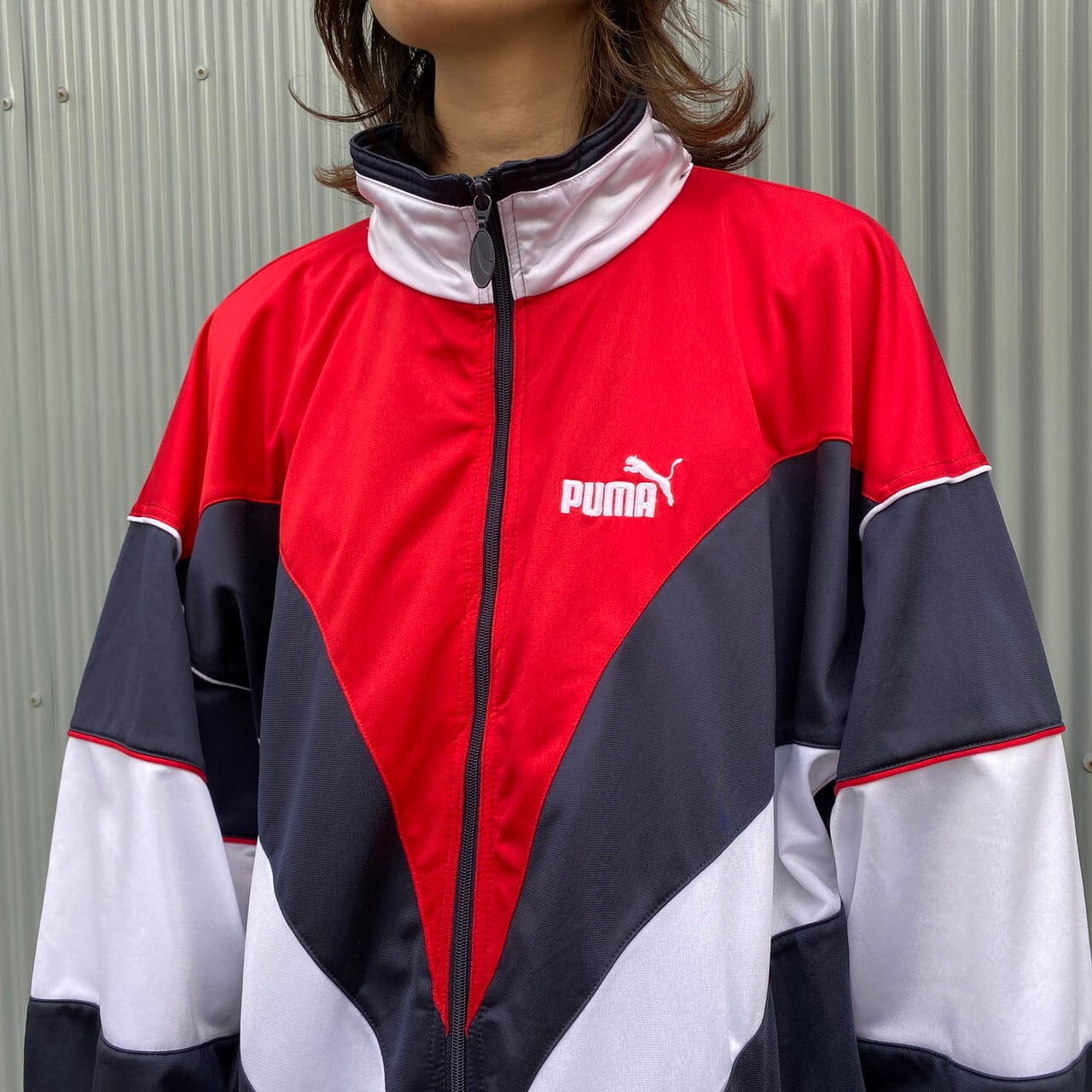 ■80年代~90年代 ヴィンテージ puma プーマ トラックジャケット ジャージ メンズXL 古着 80S 90S ヴィンテージ ビンテージ ネイビー×レッド×ホワイト ビッグサイズ【ジャージ・トラックジャケット】