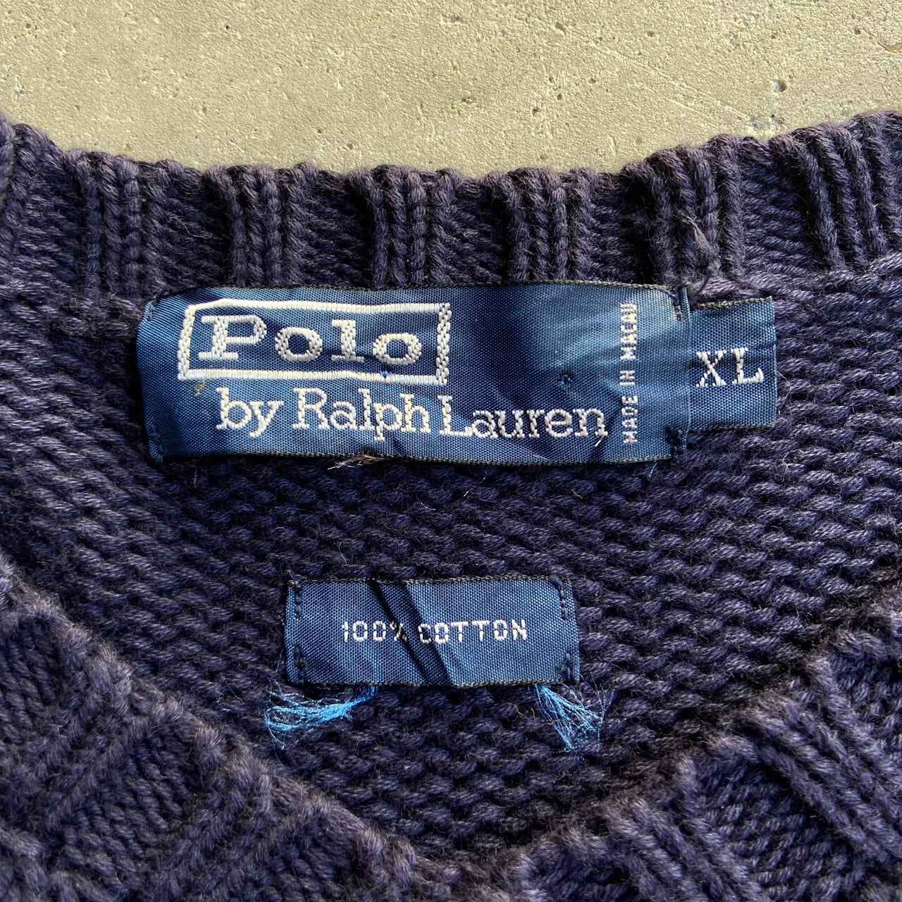■ビッグサイズ Polo by Ralph Lauren ポロバイラルフローレン Vネック コットンニットセーター メンズ2XL相当 古着 ワンポイントロゴ刺繍 ネイビー 紺 大きいサイズ 【ニットセーター】