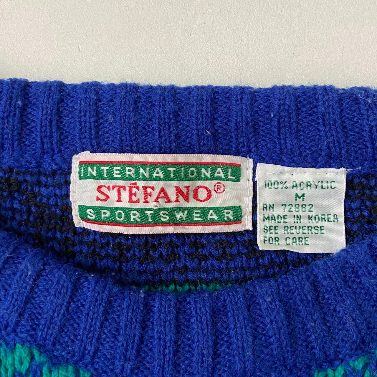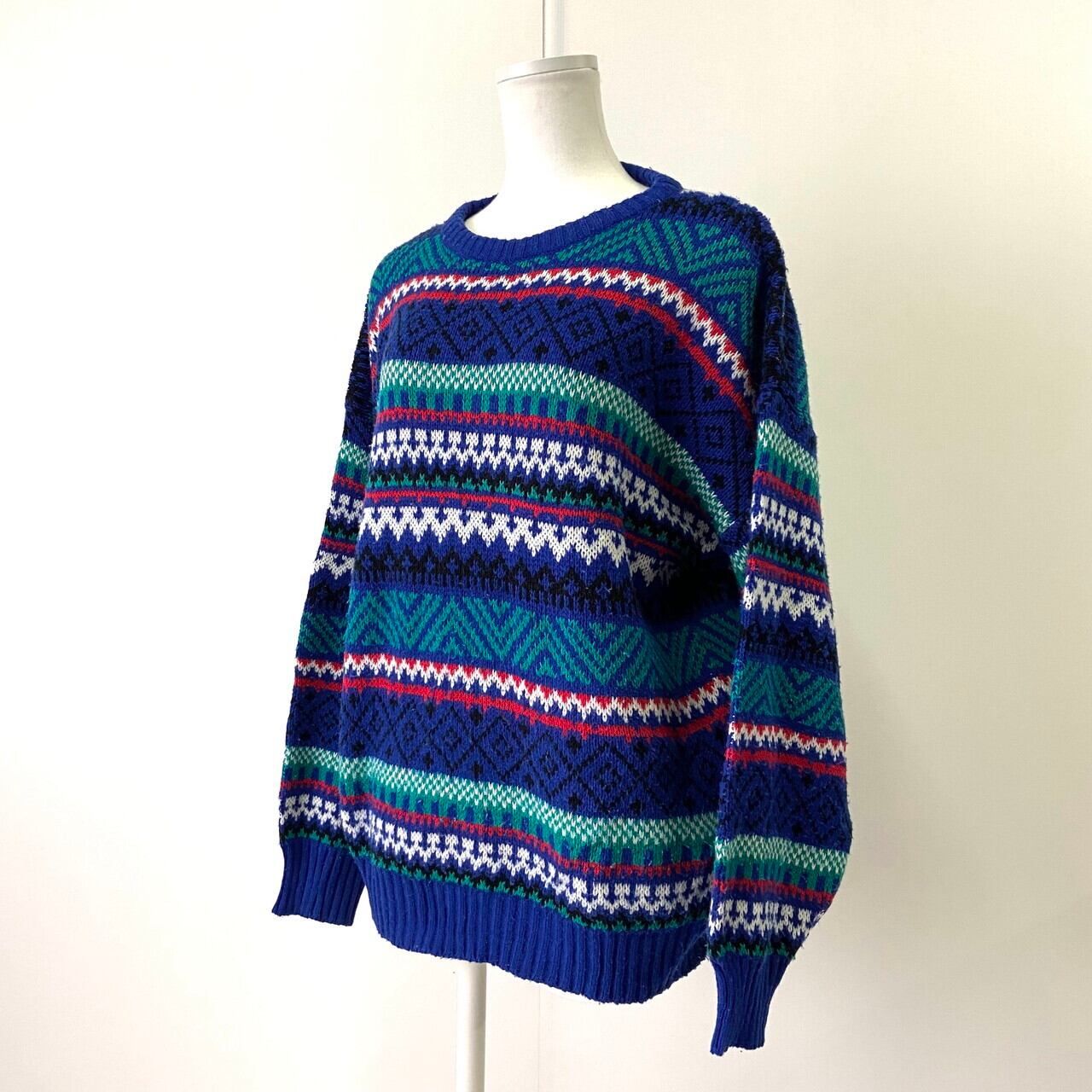 フェアアイル 総柄 アクリル ニットセーター レディースM 古着 ブルー 青【ニットセーター】【WS2201】