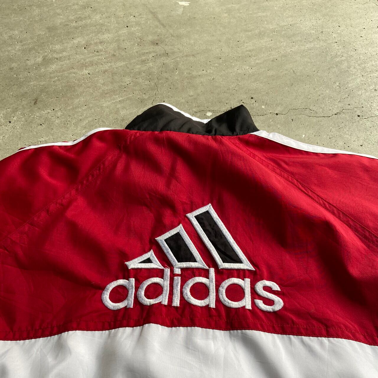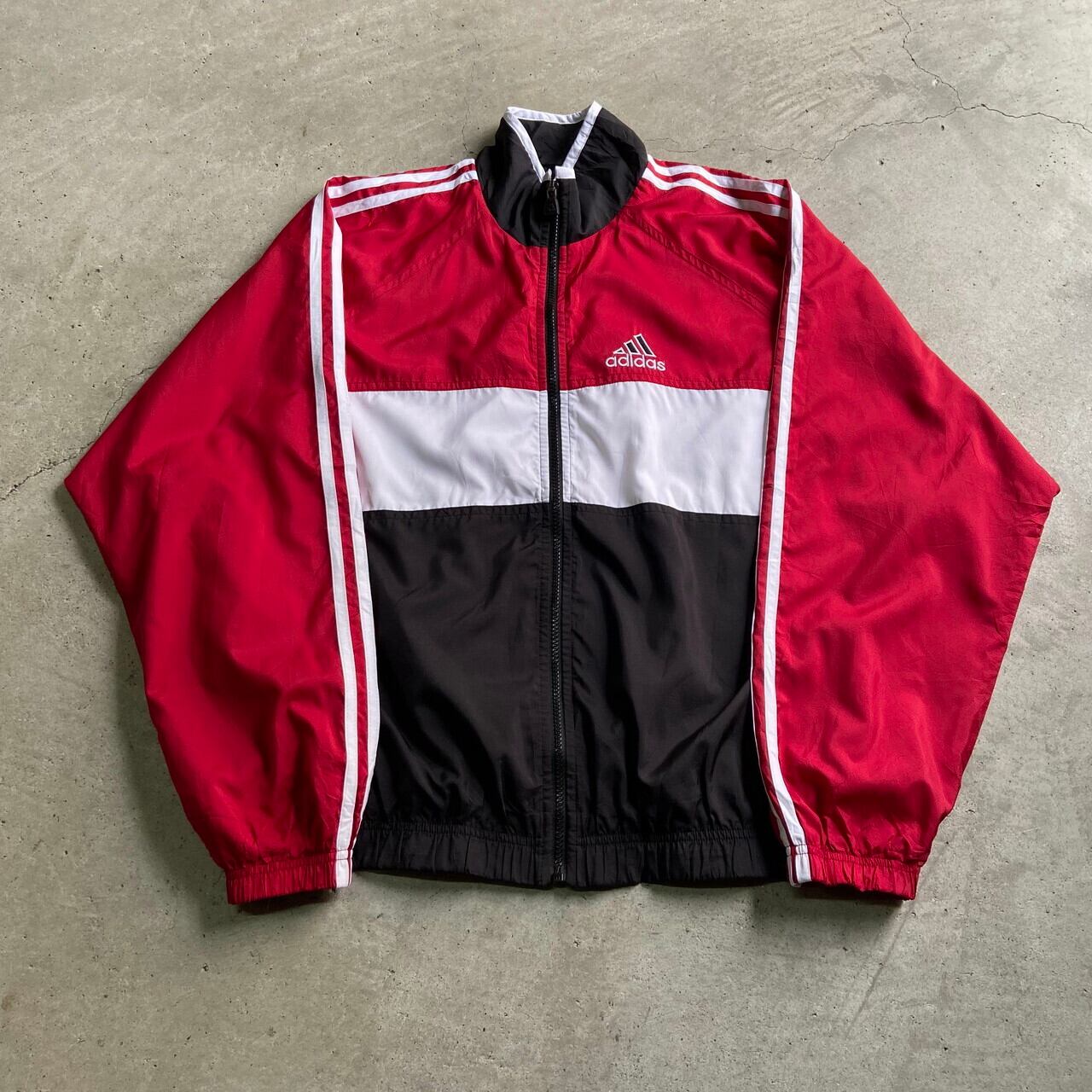 00年代 adidas アディダス ワンポイント刺繍 サイドライン ナイロンジャケット メンズL-XL相当 古着 バックロゴ刺繍 00S ビンテージ ヴィンテージ 切り替え レッド ブラック ホワイト 黒 赤色 白【ナイロンジャケット】【SS2201-30】