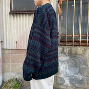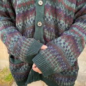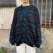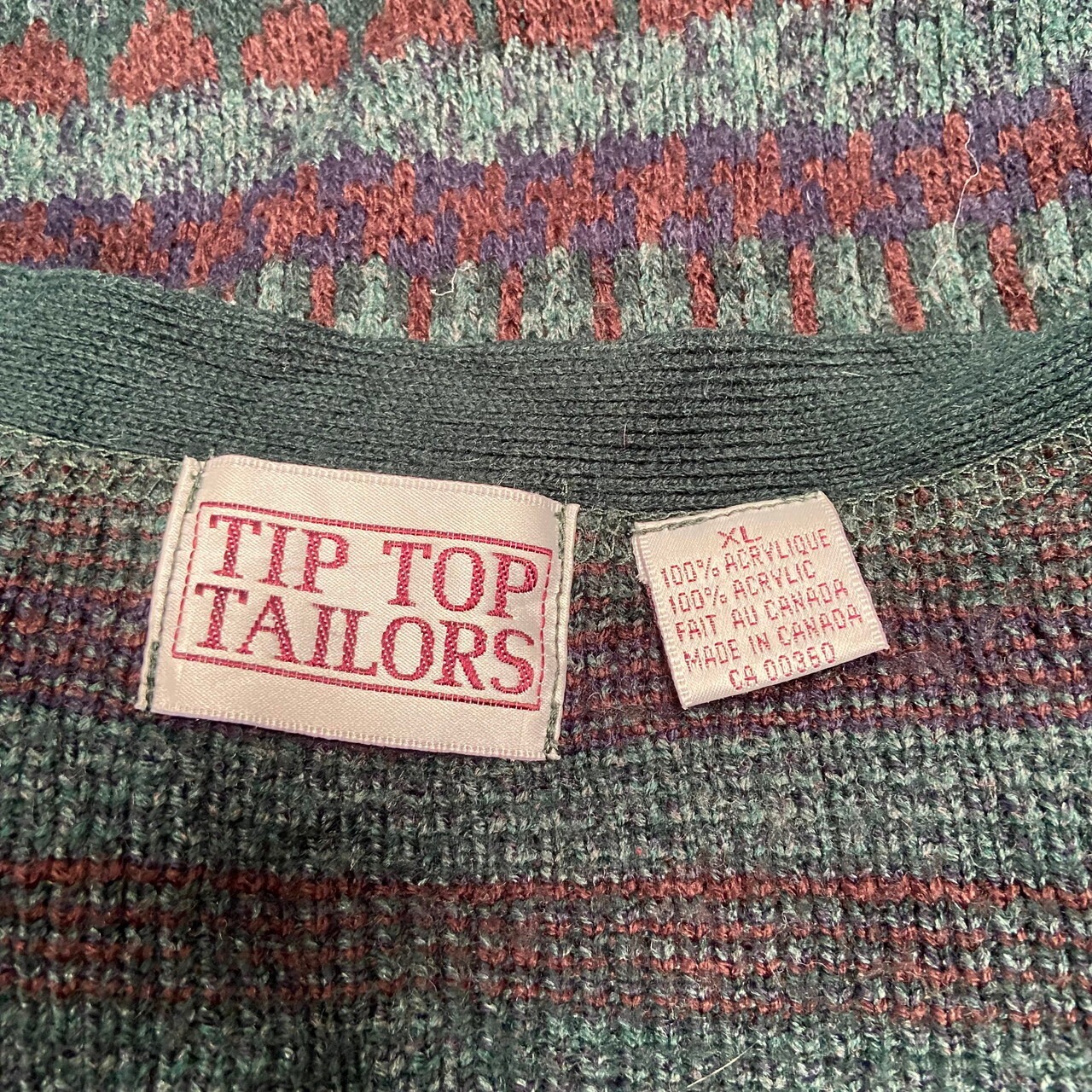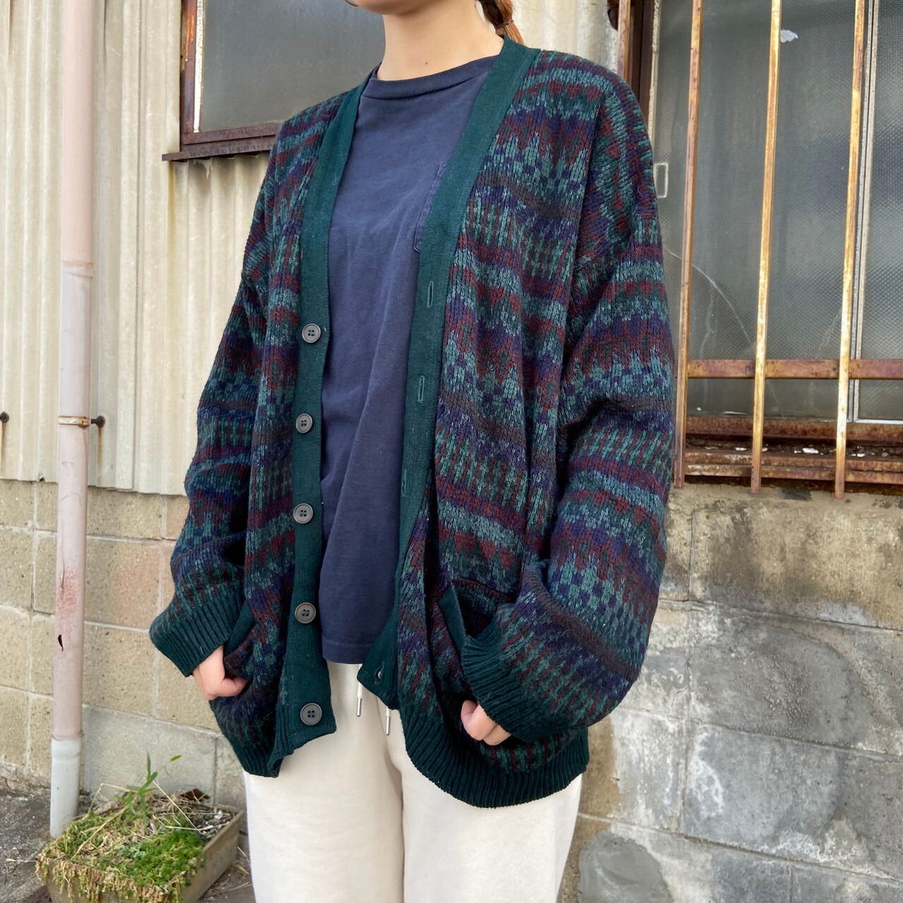 カナダ製 TIP TOP TAILORS 総柄 アクリルニットカーディガン メンズXL 古着 グリーン 緑色 【ニットセーター】