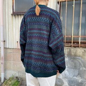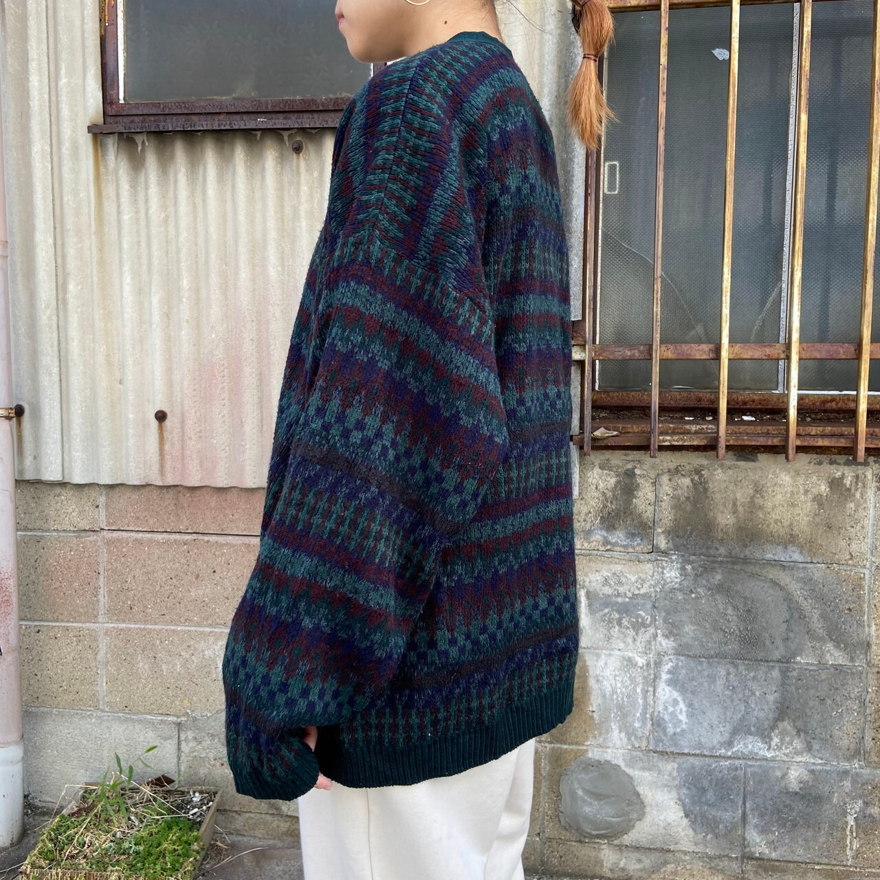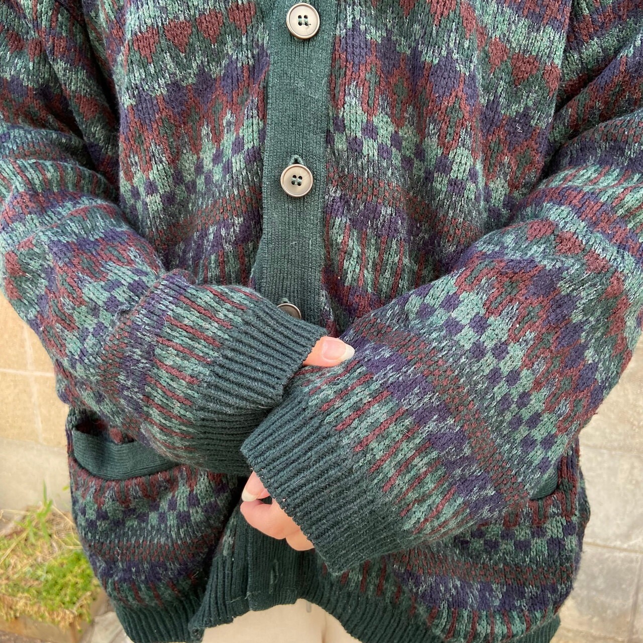 ■カナダ製 TIP TOP TAILORS 総柄 アクリルニットカーディガン メンズXL 古着 グリーン 緑色 【ニットセーター】