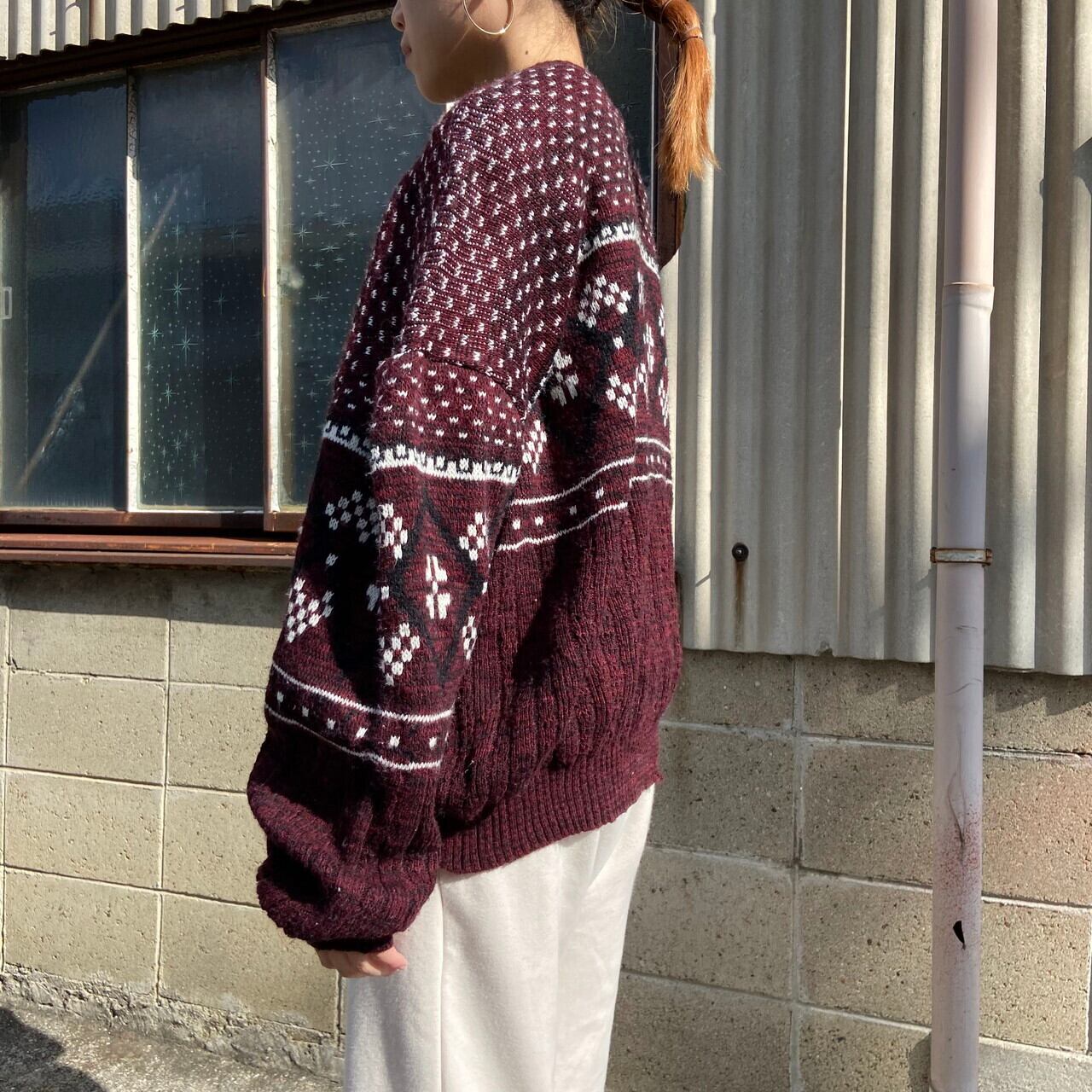 HARDWOOD&PINE 総柄 アクリル ニットセーター メンズXL レディース2XL 古着 えんじ レッド 赤【ニットセーター】‐2