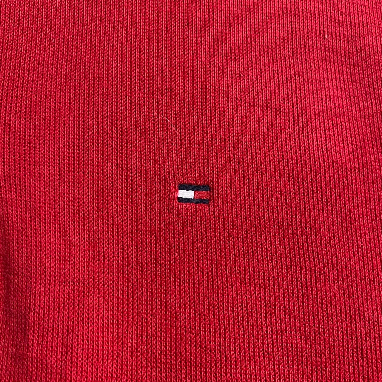 TOMMY HILFIGER トミーヒルフィガー ハーフジップスウェット トレーナー ハイネック レッド 赤 メンズXL 古着 ワンポイントロゴ刺?【スウェット】【SS2201-30】