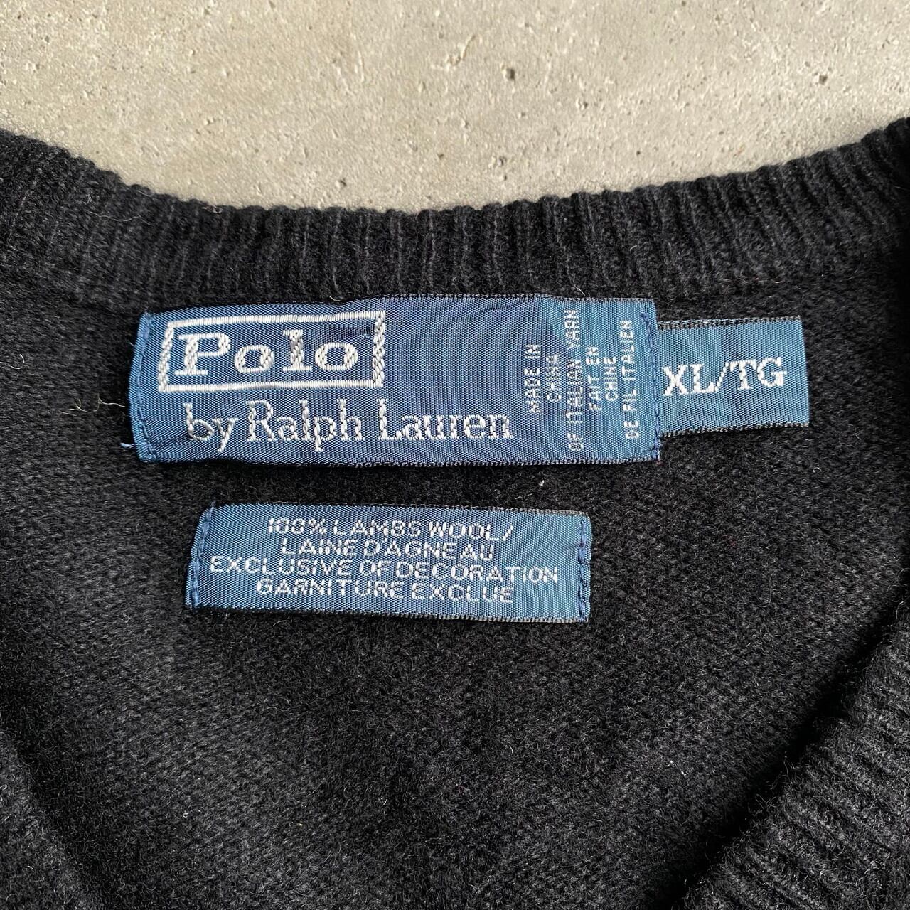 ■Polo by Ralph Lauren ポロバイラルフローレン ラムウール Vネック ニットセーター メンズXL 古着 ブラック 黒 ワンポイントロゴ刺繡【ニットセーター】