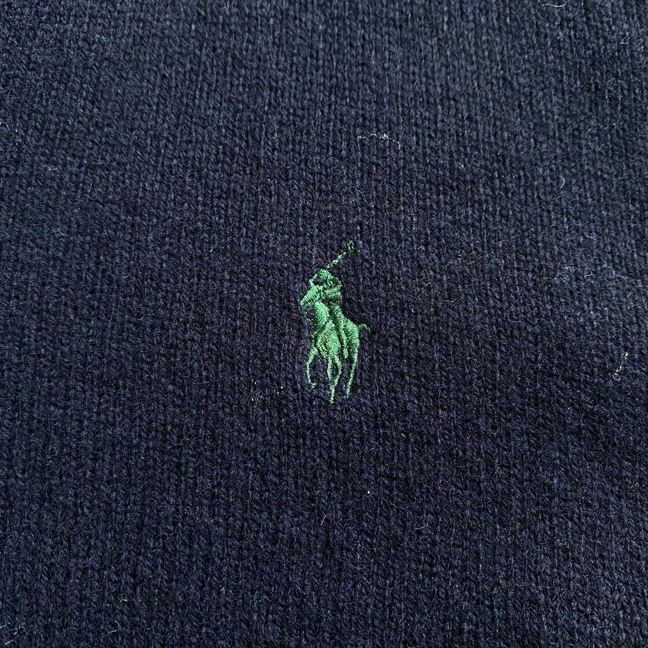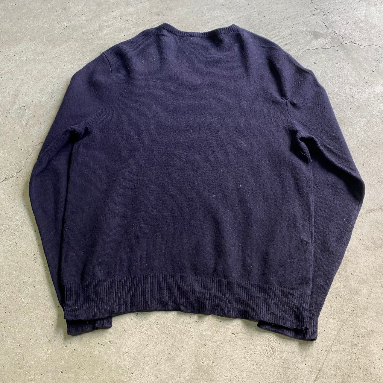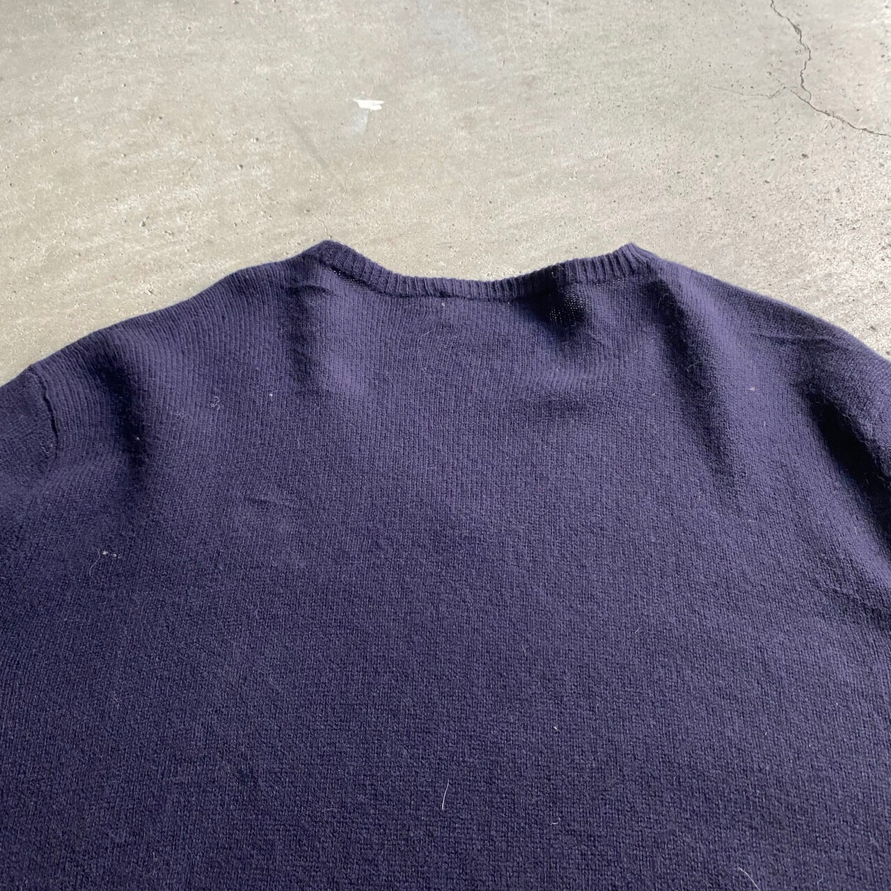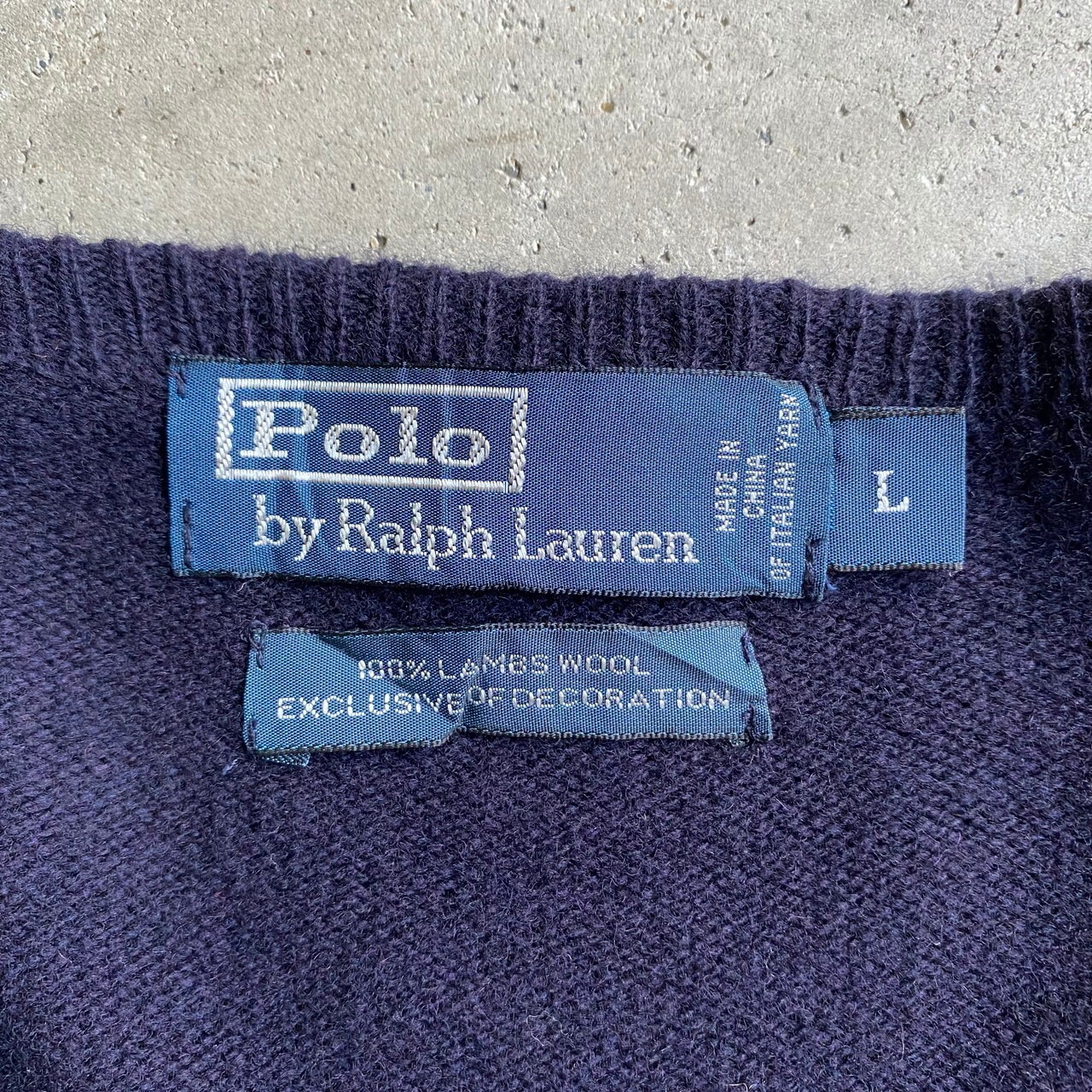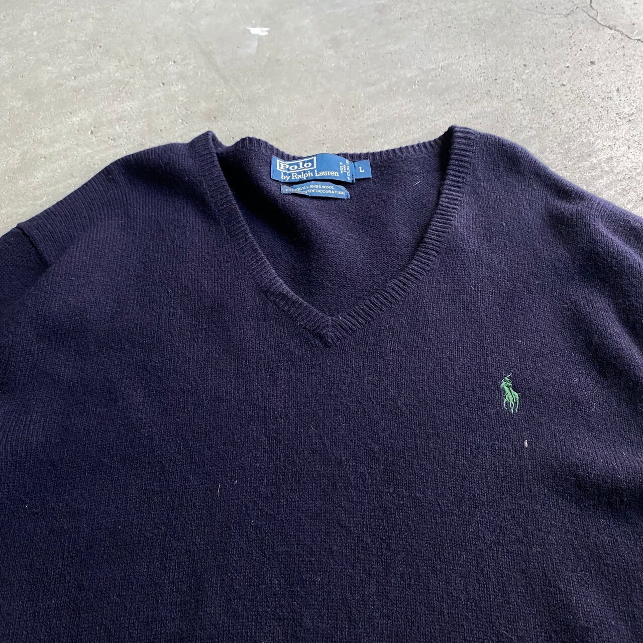 ■Polo by Ralph Lauren ポロバイラルフローレン ラムウール Vネック ニットセーター メンズL 古着 ネイビー 紺 ワンポイントロゴ刺繡【ニットセーター】