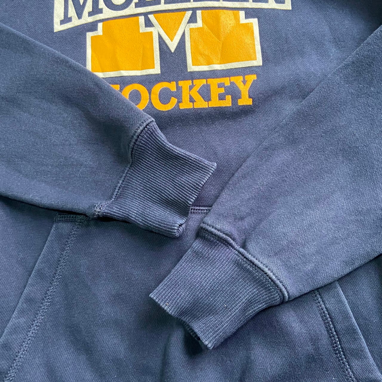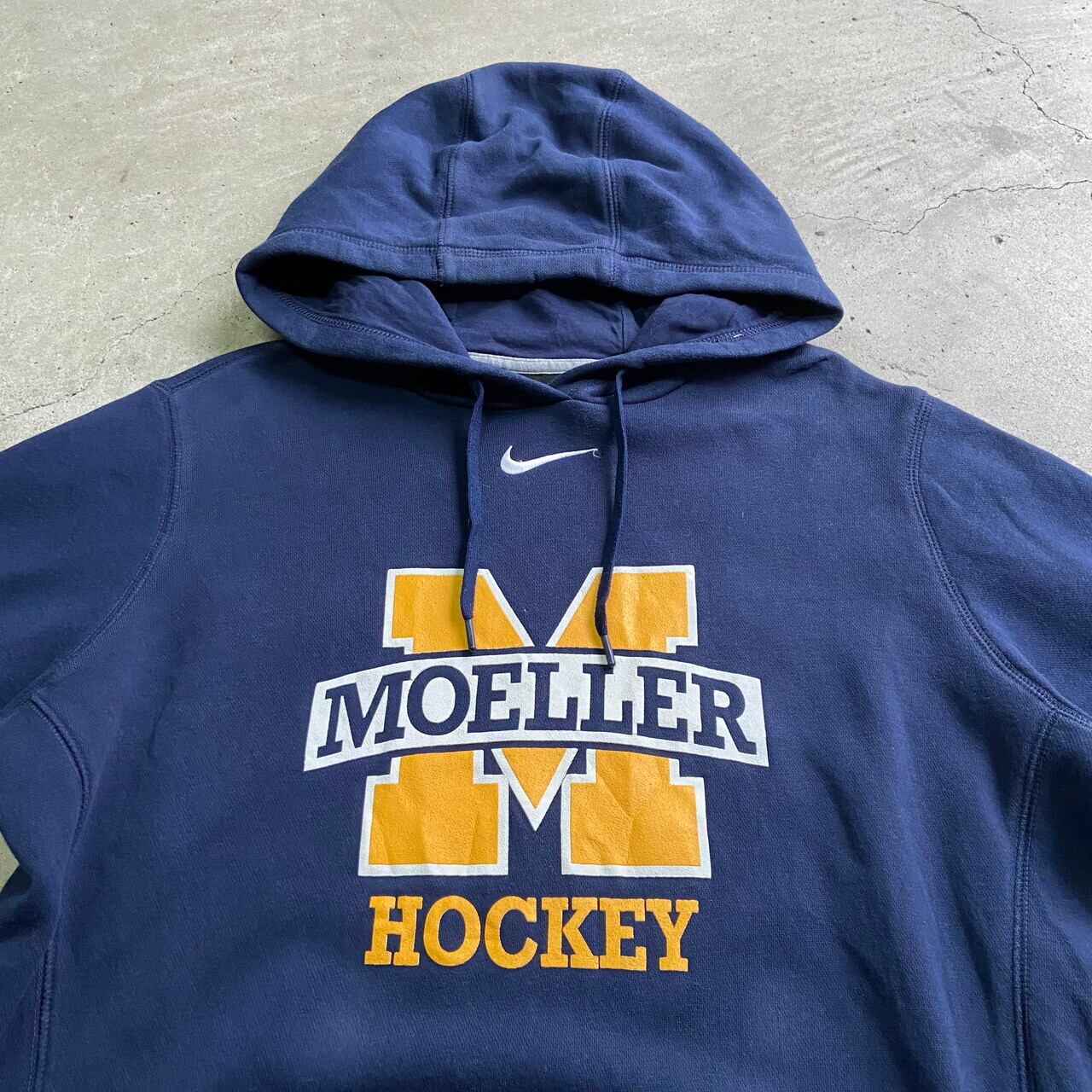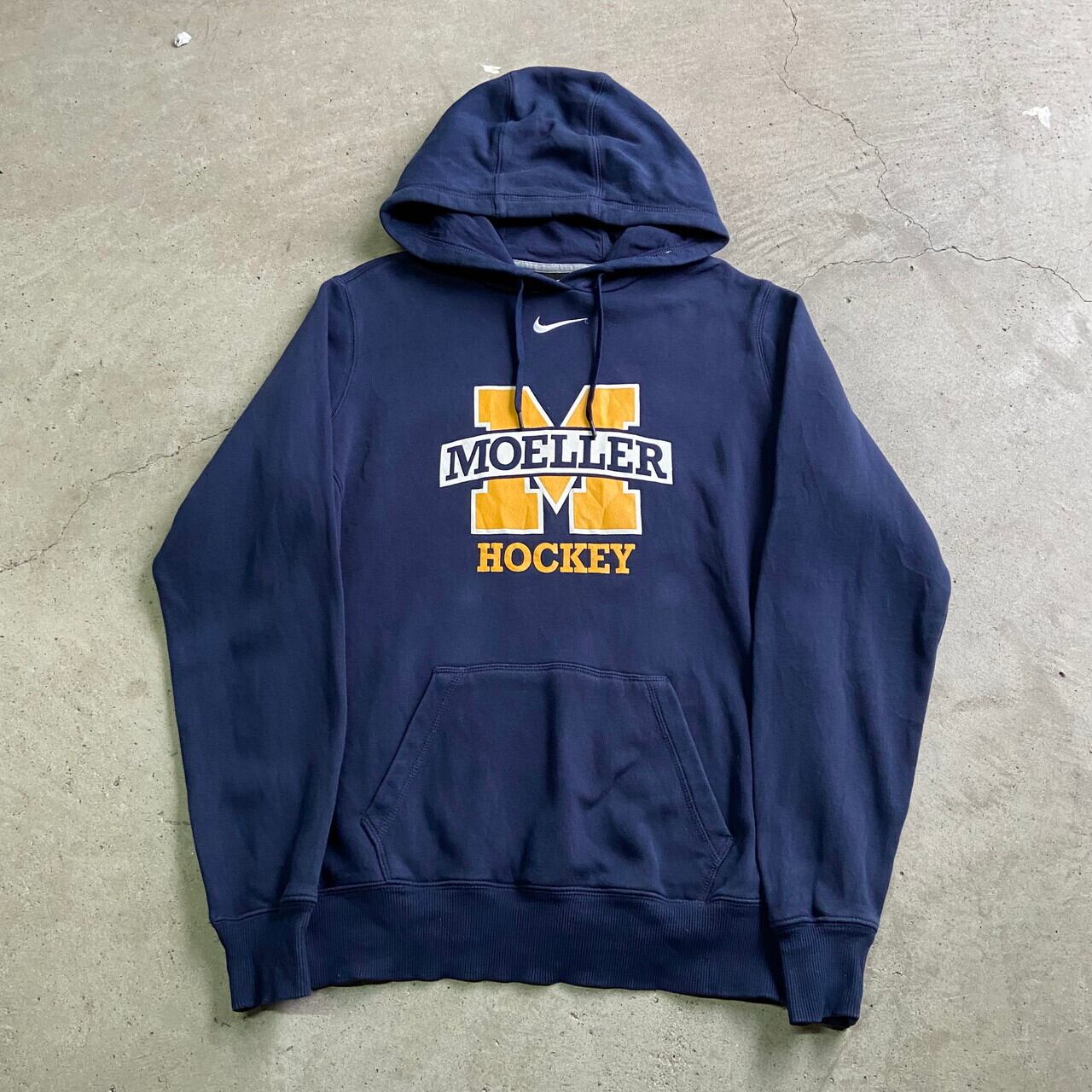 NIKE ナイキ ホッケー チームロゴ スウォッシュ ワンポイントロゴ刺繍 フロントロゴ プルオーバー スウェットパーカー メンズL 古着 ネイビー 紺【パーカー】【SWE30】【CS2211-50】