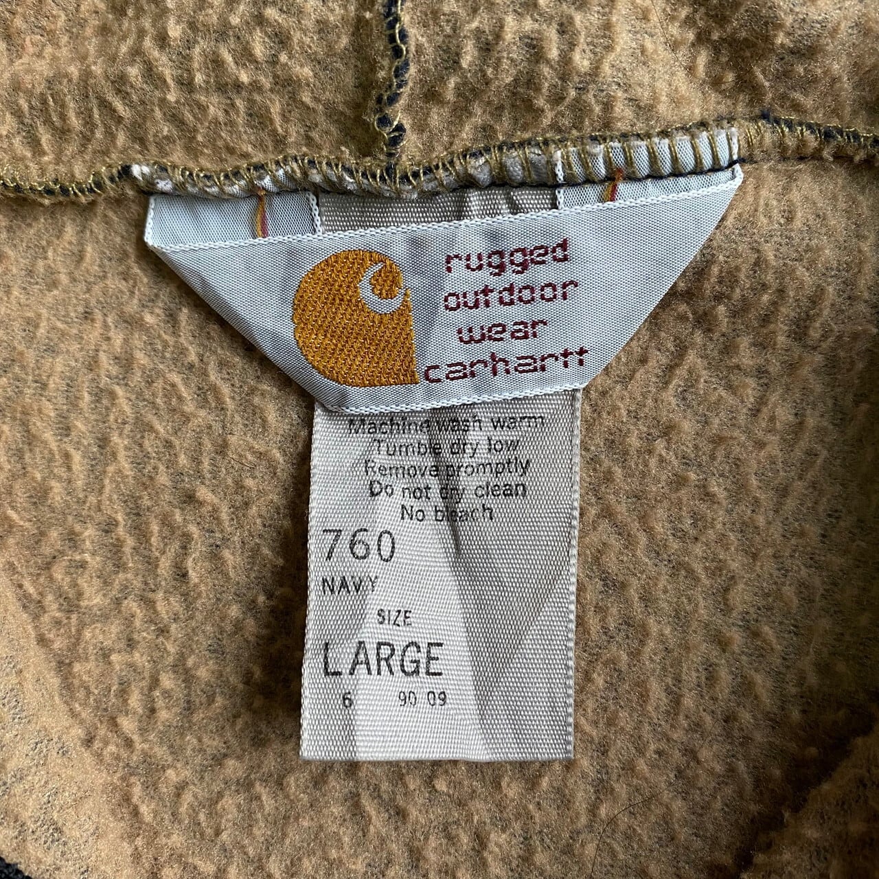 USA製 80年代 Carhartt カーハート ベロアパーカー 裏起毛 メンズL 古着 フルジップパーカー ネイビー 紺色 ヴィンテージ ビンテージ【パーカー】