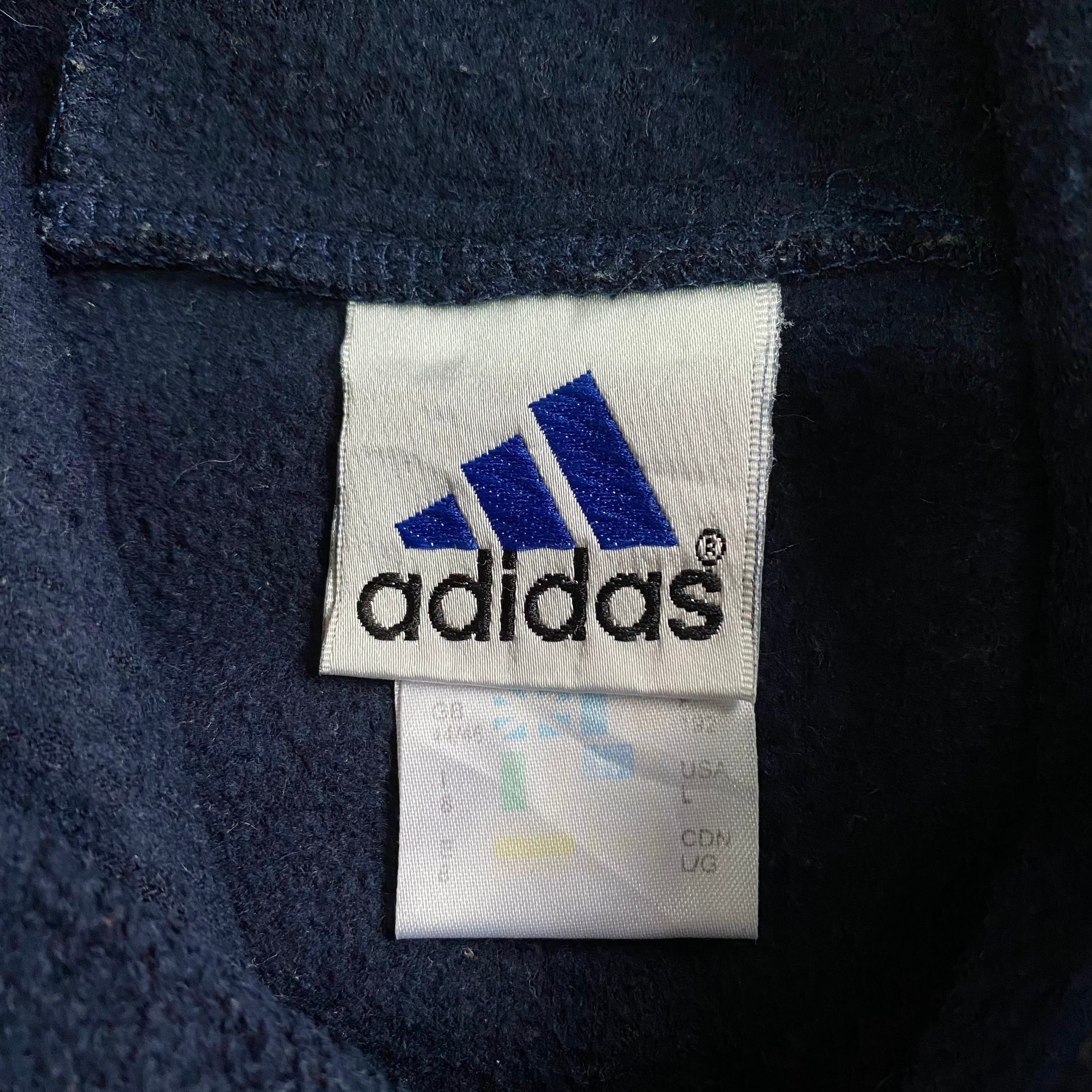 90年代 adidas アディダス ワンポイントロゴ刺繍 フリースプルオーバーパーカー メンズXL相当 古着 90S ヴィンテージ ビンテージ ネイビー 紺色【フリースジャケット】-2【WS2202-50】【SOL】