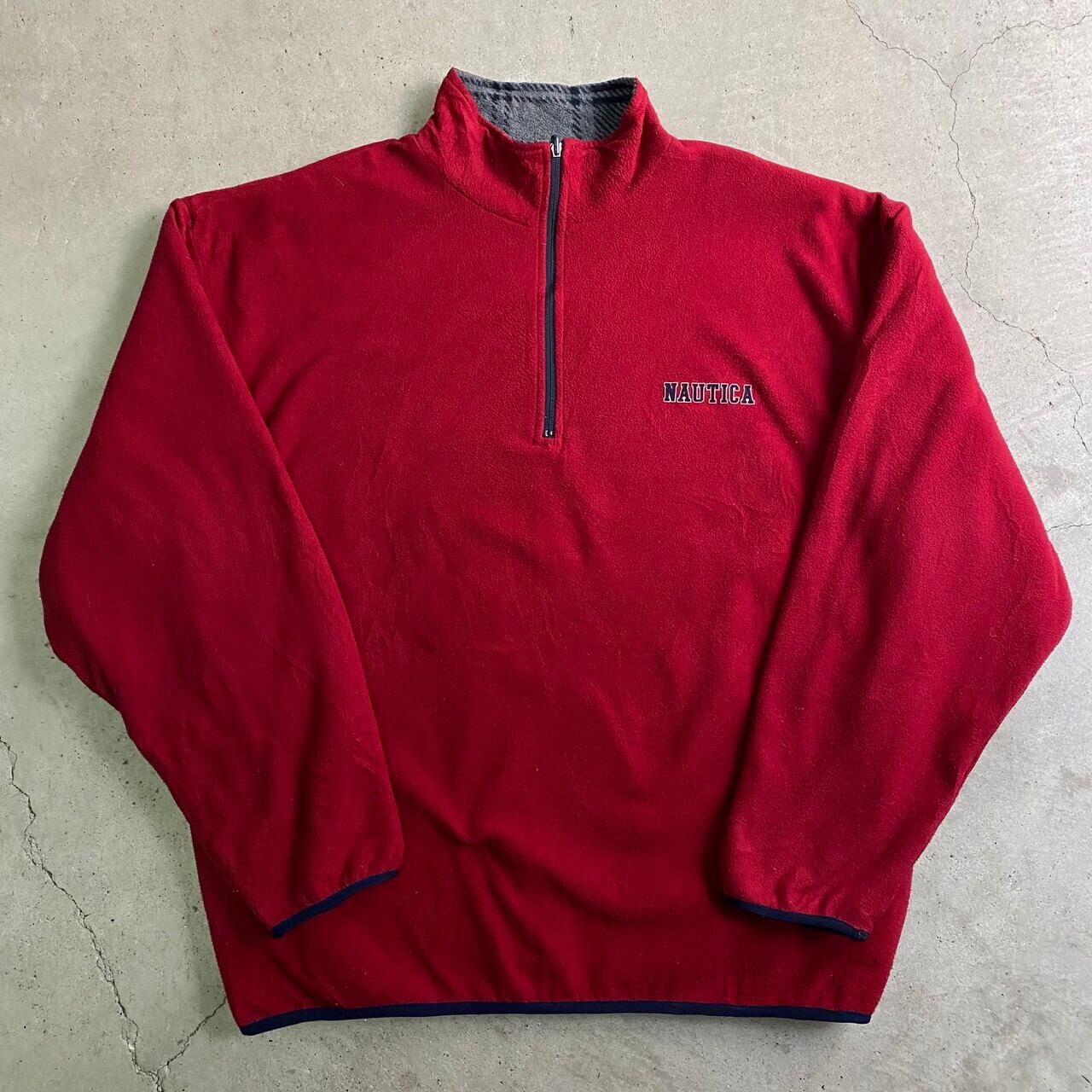 ■ビッグサイズ NAUTICA ノーティカ NAUTECH リバーシブル チェック柄 ワンポイントロゴ ハーフジップ ハイネック フリースプルオーバー メンズ2XL相当 古着 グレー ワインレッド 灰色 えんじ【フリースジャケット】