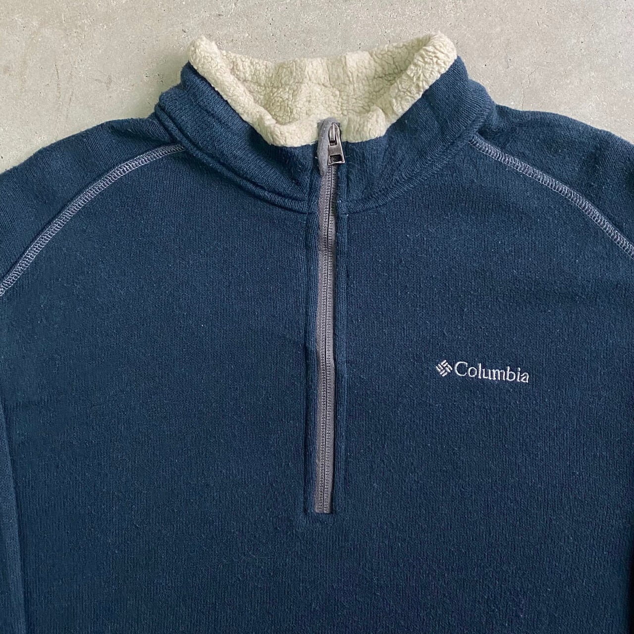 ■Columbia コロンビア ハーフジップ ニットフリースプルオーバー メンズL 古着 ダークグリーン 深緑色【フリースジャケット】