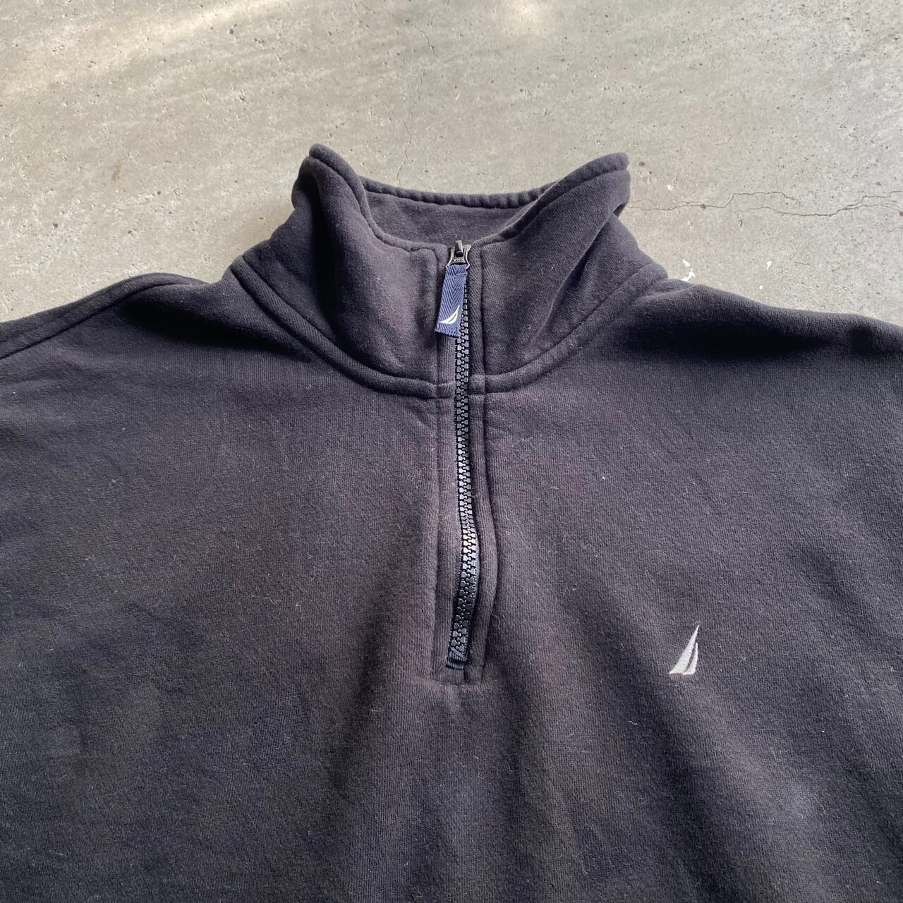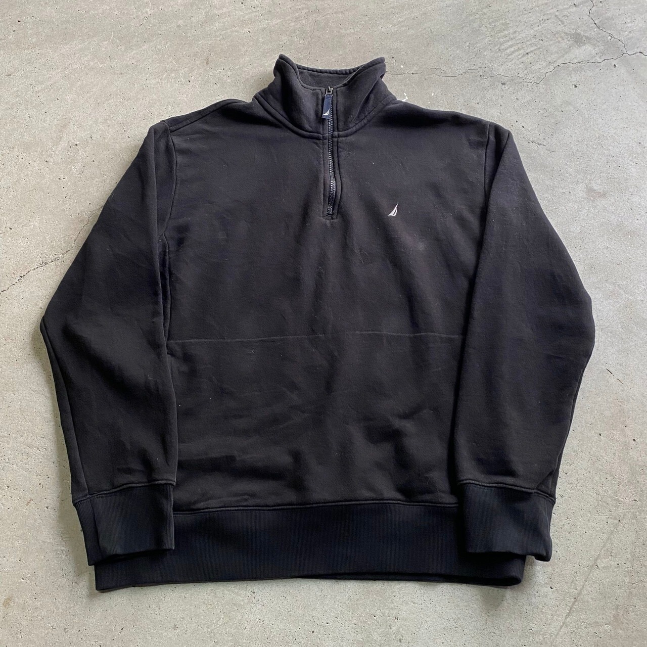 ■ NAUTICA ノーティカ ワンポイントロゴ刺繡 ハーフジップスウェット メンズM 古着 トレーナー ブラック 黒【スウェット】