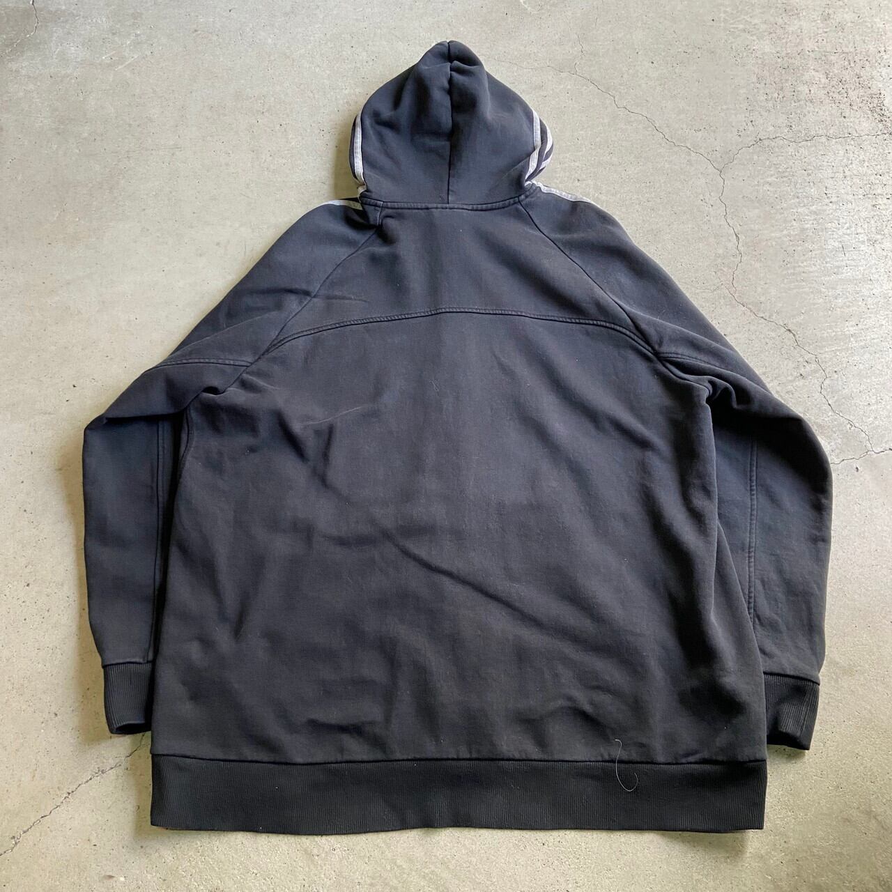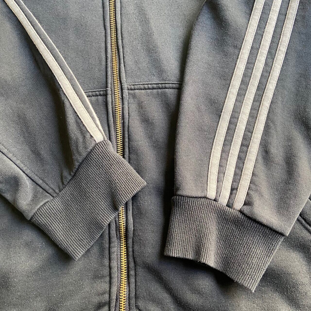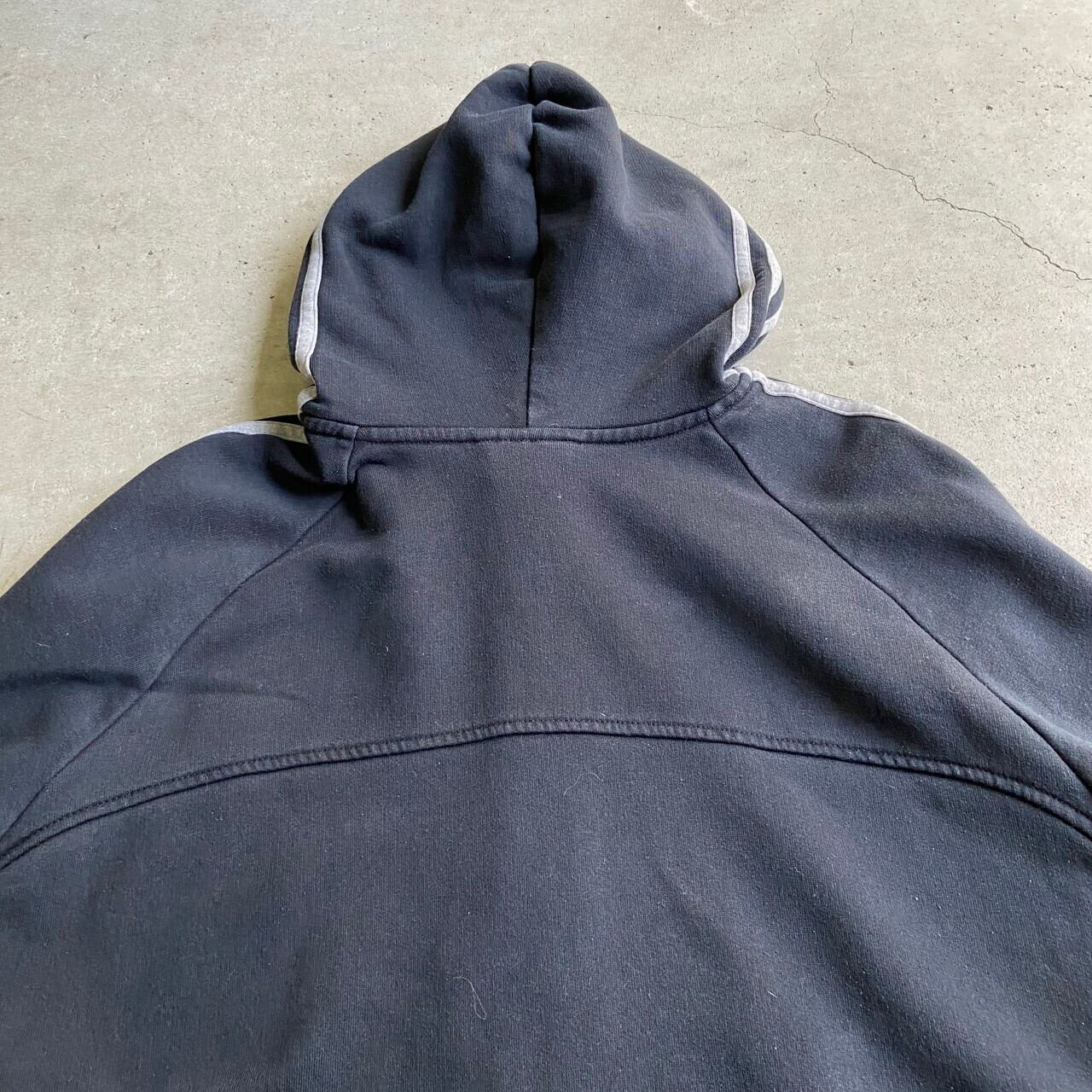 ■超ビッグサイズ adidas アディダス ワンポイントロゴ刺繍 袖ライン フルジップパーカー メンズ6XL相当 古着 スウェットパーカー ブラック 黒色 大きいサイズ【パーカー】
