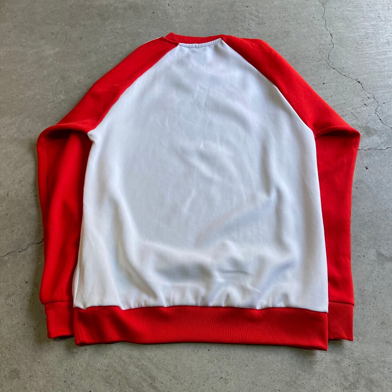 adidas アディダス トレフォイル ロゴ 刺繍 ラグラン ジャージ素材 スウェット トレーナー メンズM 古着 トレーナー ホワイト×レッド 白×赤色【スウェット】