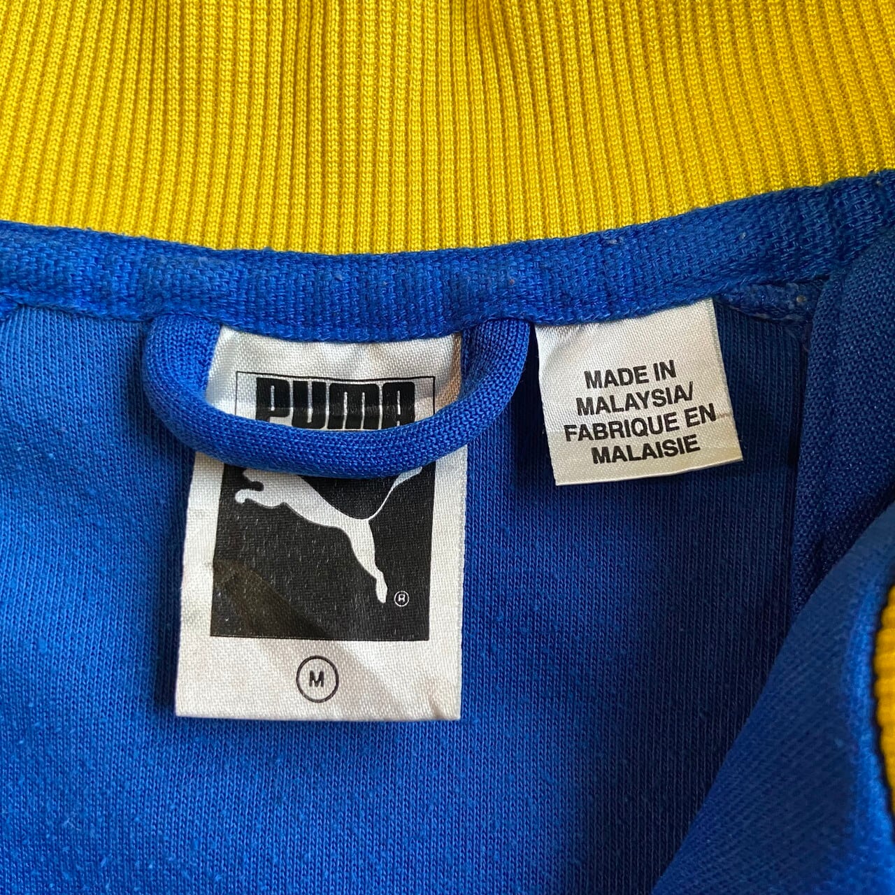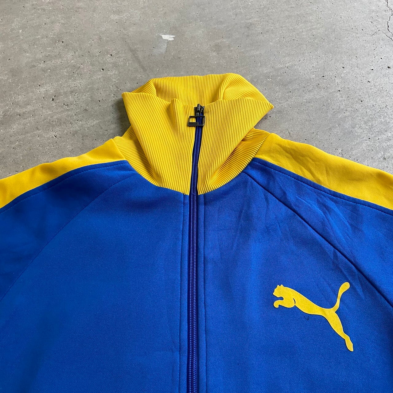 00年代 ヴィンテージ puma プーマ トラックジャケット ジャージ メンズM バックプリント 古着 00S ヴィンテージ ビンテージ ブルー×イエロー 青 黄【ジャージ・トラックジャケット】
