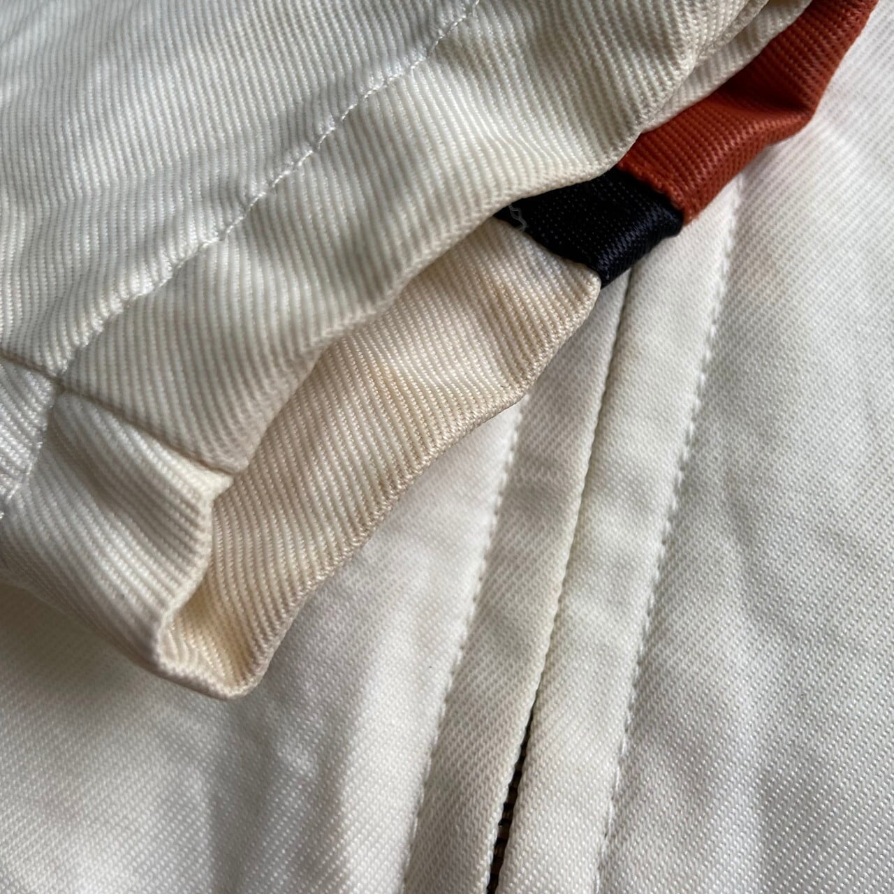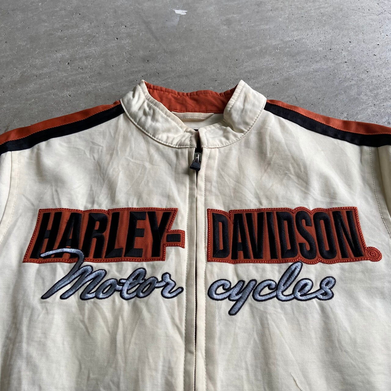 ■00年代 Harley-Davidson ハーレーダビッドソン ロゴ刺繍 ワッペン 袖ライン フルジップ コットン×ナイロンジャケット レメンズS 古着 ハイネック ジャケット バイク モーターサイクル ホワイト 白【コットンジャケット】