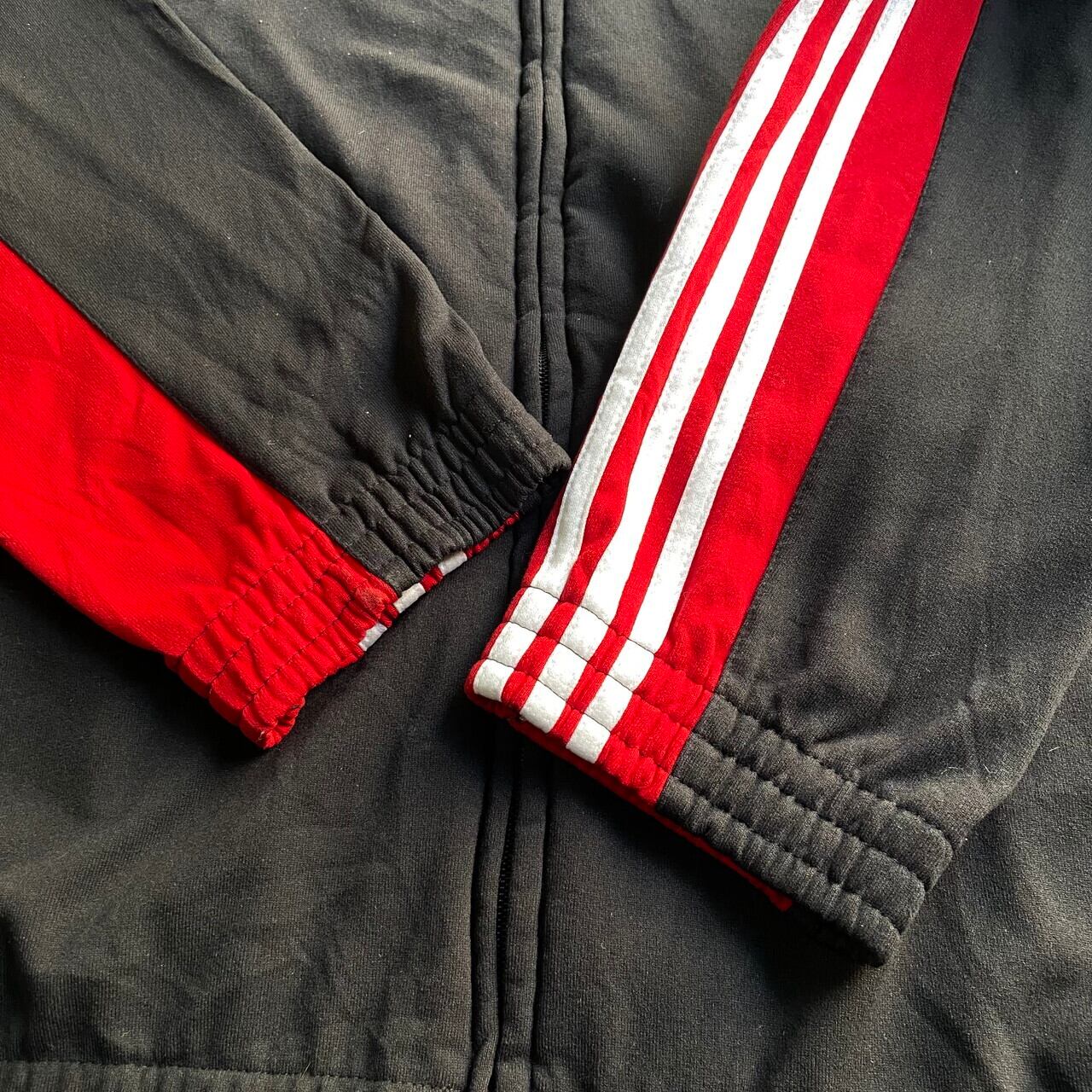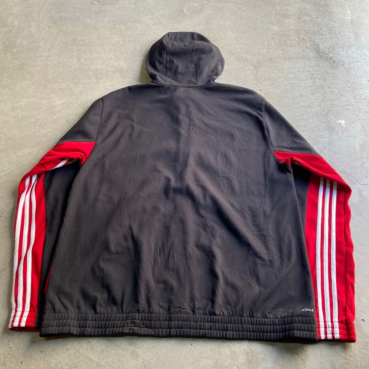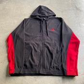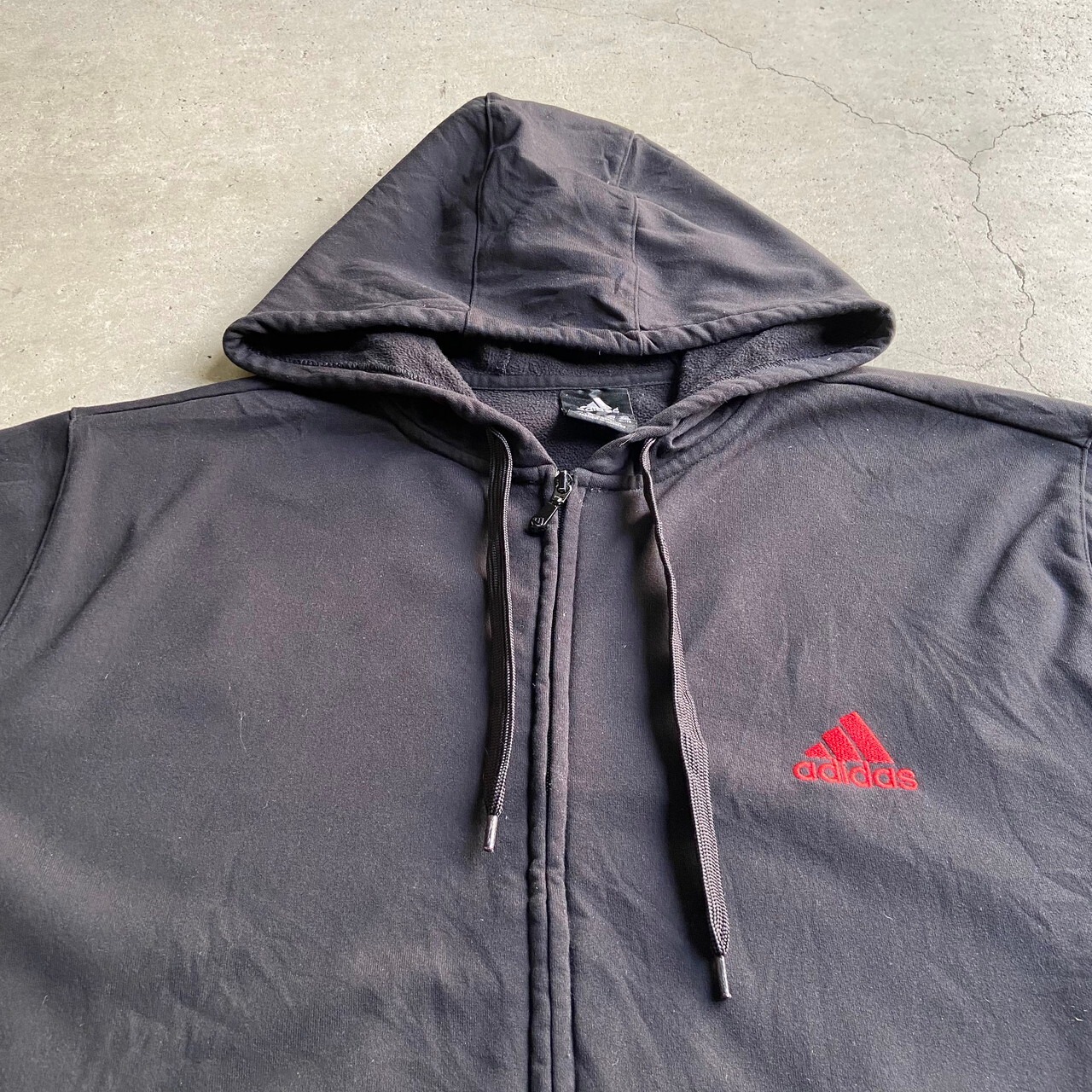 ■ビッグサイズ adidas アディダス 袖ライン ワンポイントロゴ刺繍 フルジップ スウェットパーカー メンズ2XL相当 古着 スウェットパーカー ブラック 黒色【パーカー】