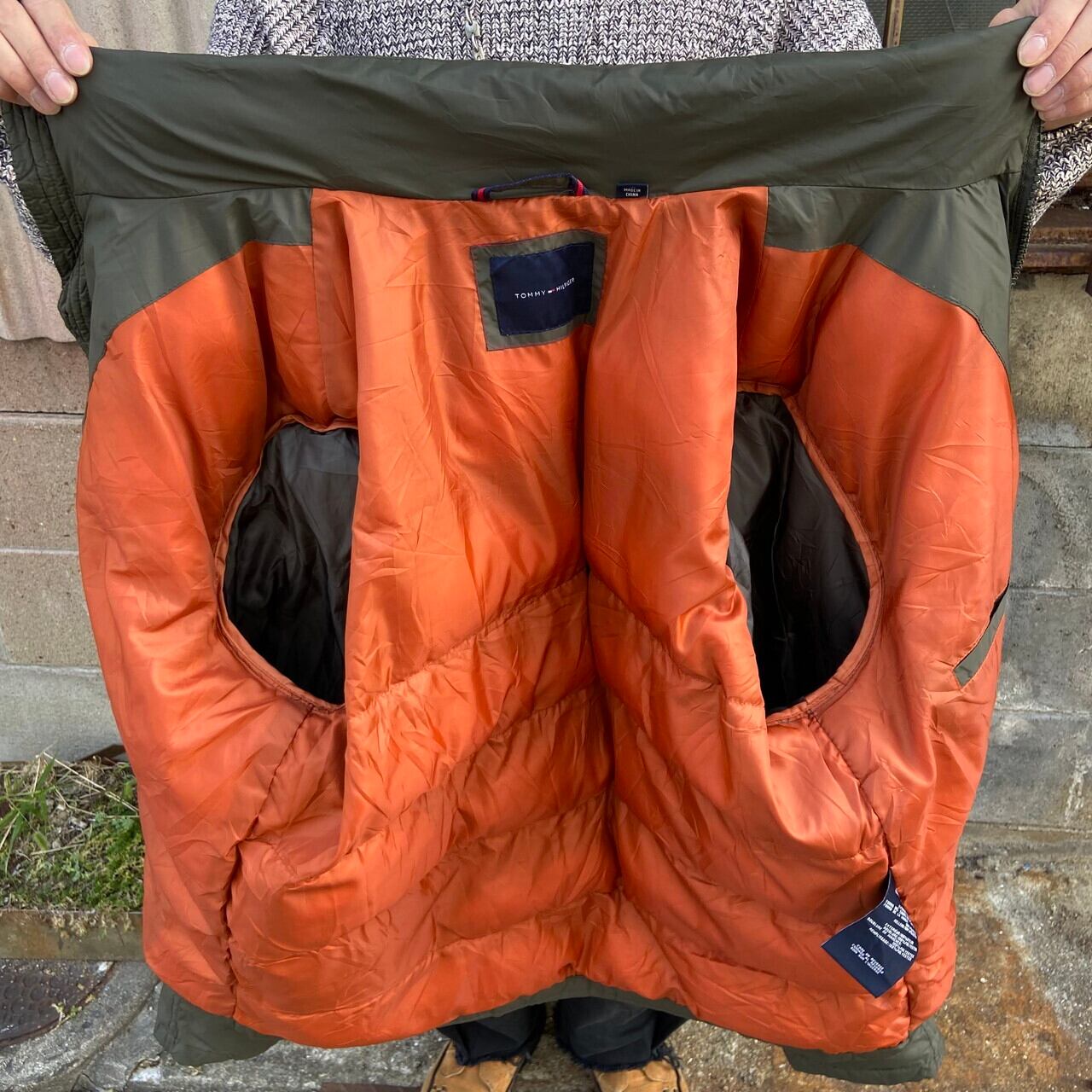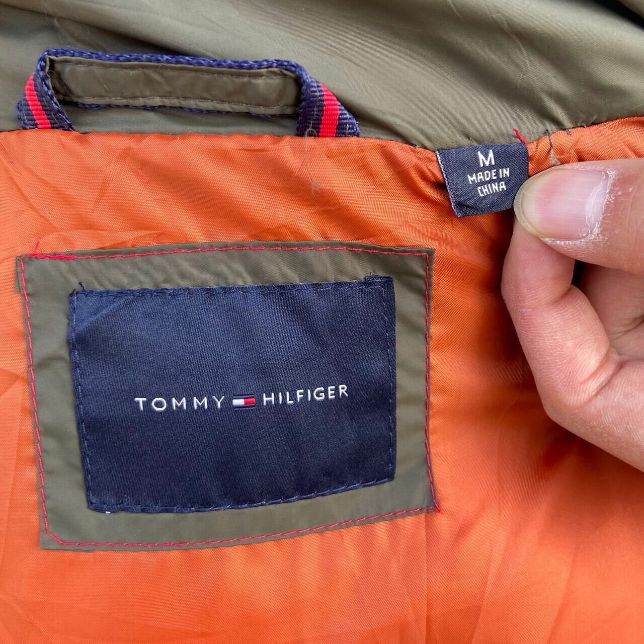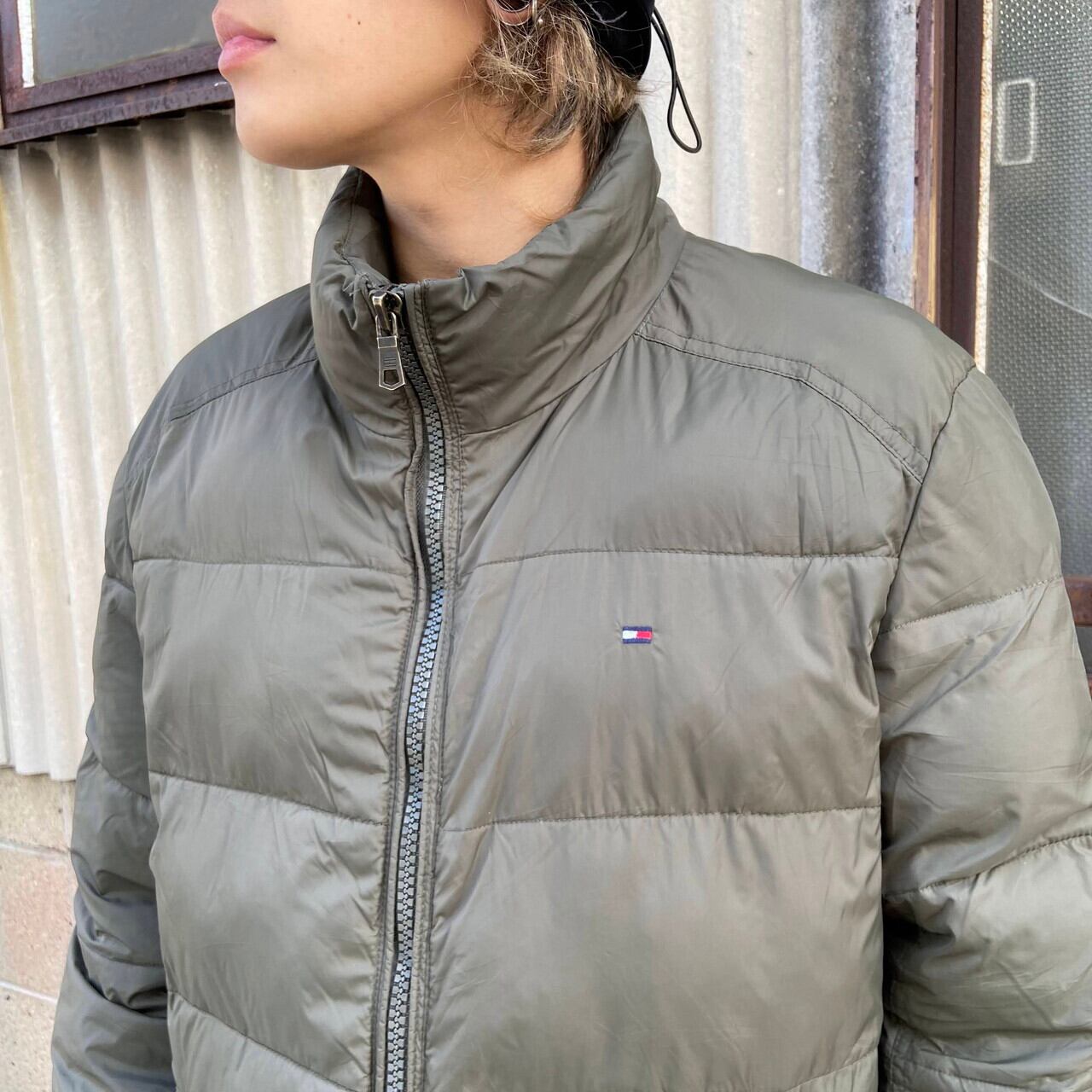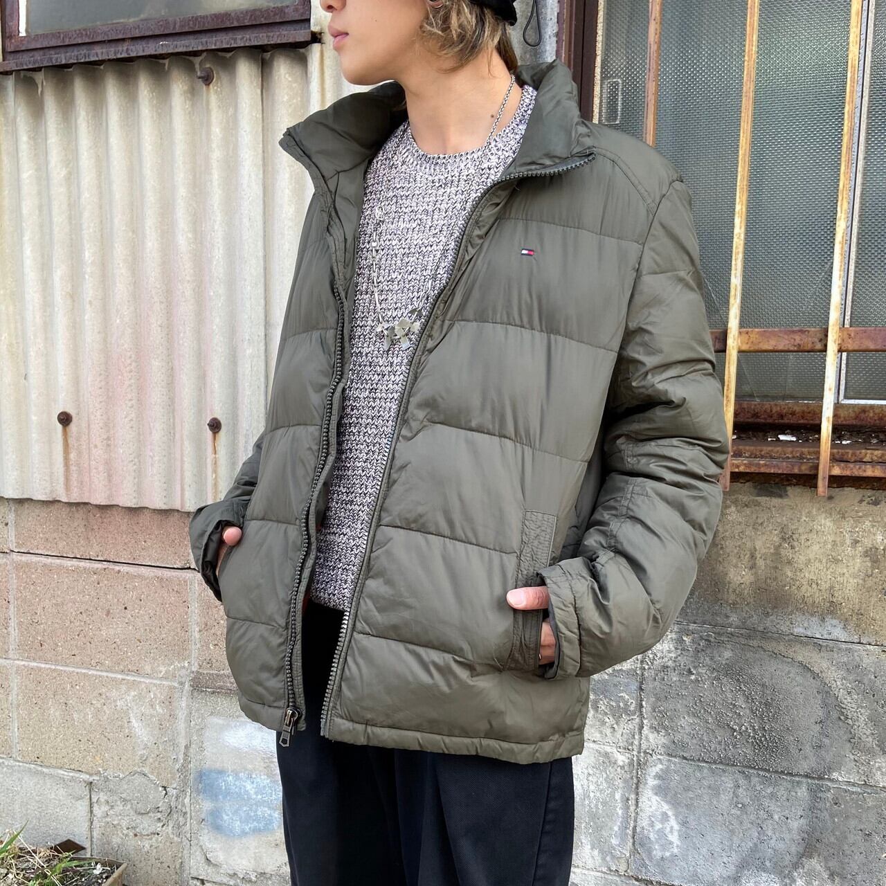 TOMMY HILFIGER トミーヒルフィガー ワンポイントロゴ パディングジャケット メンズL相当 古着 中綿入り カーキ オリーブグリーン【ブルゾン・ジャケット】