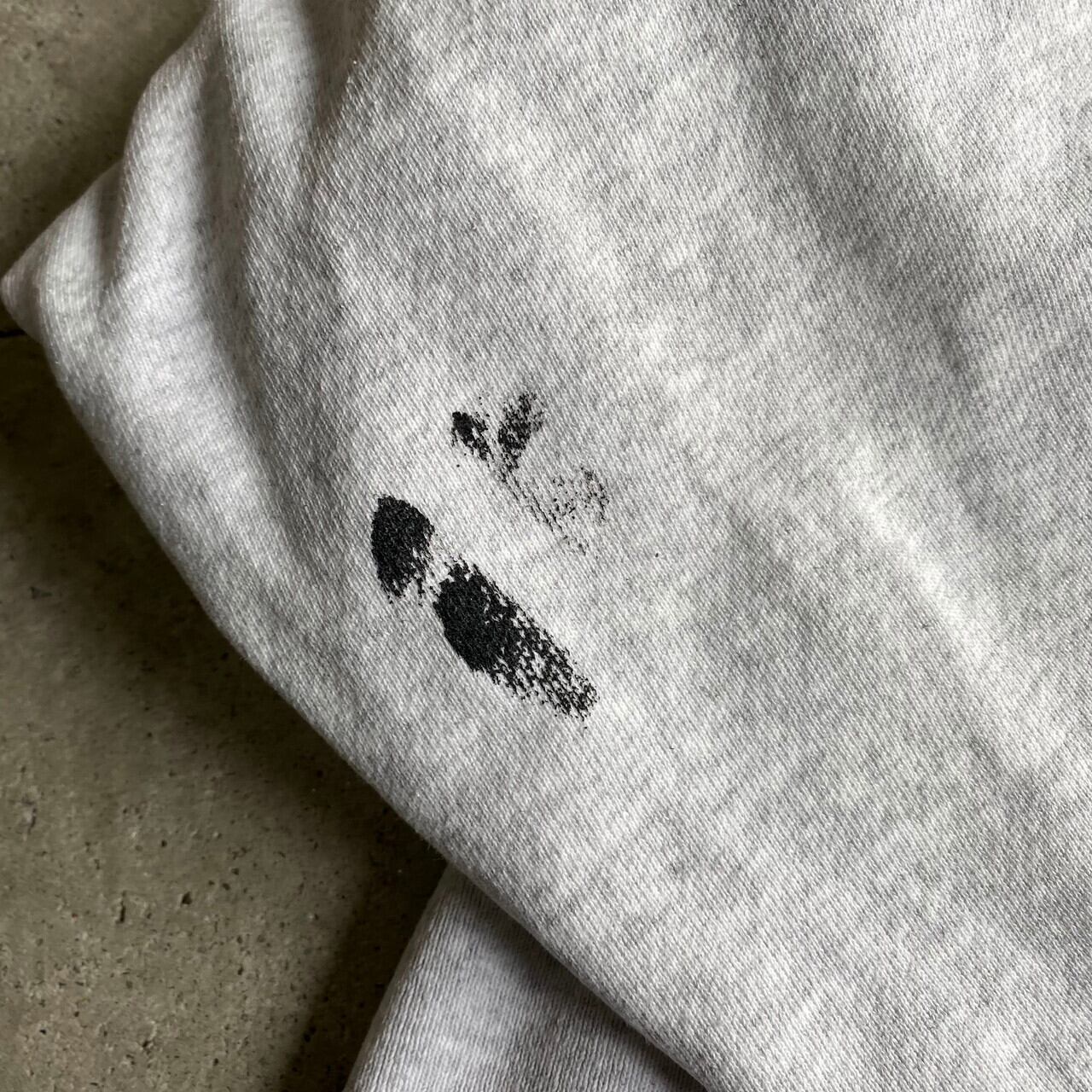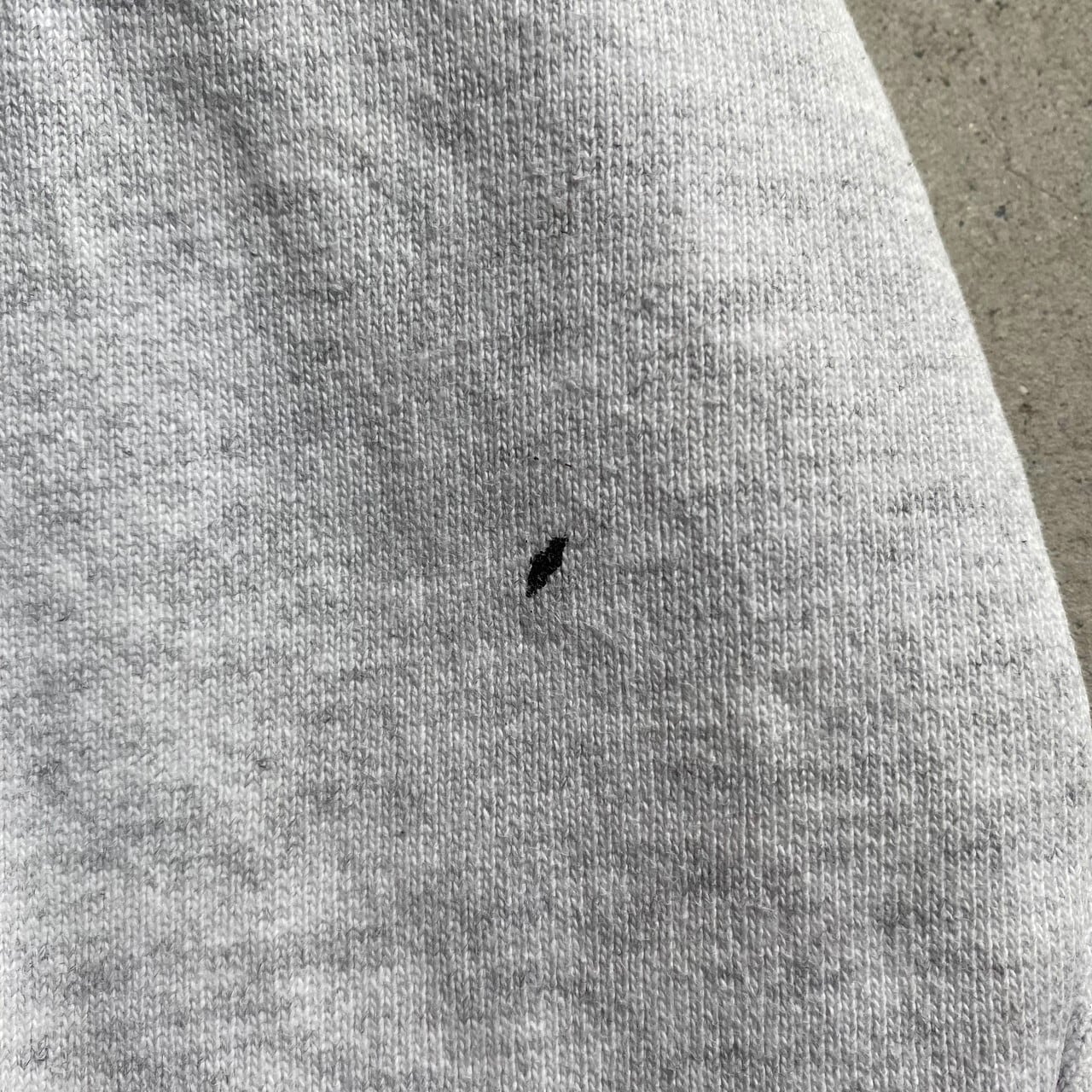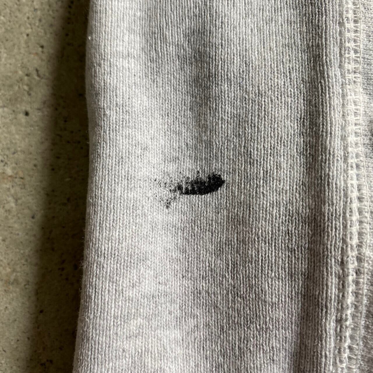 袖や右脇腹辺りに黒い汚れ、フロント中央付近小さなシミ汚れございます。その他大きなダメージ等はなく、まだまだ愛用していただけます。画像にてご確認ください。