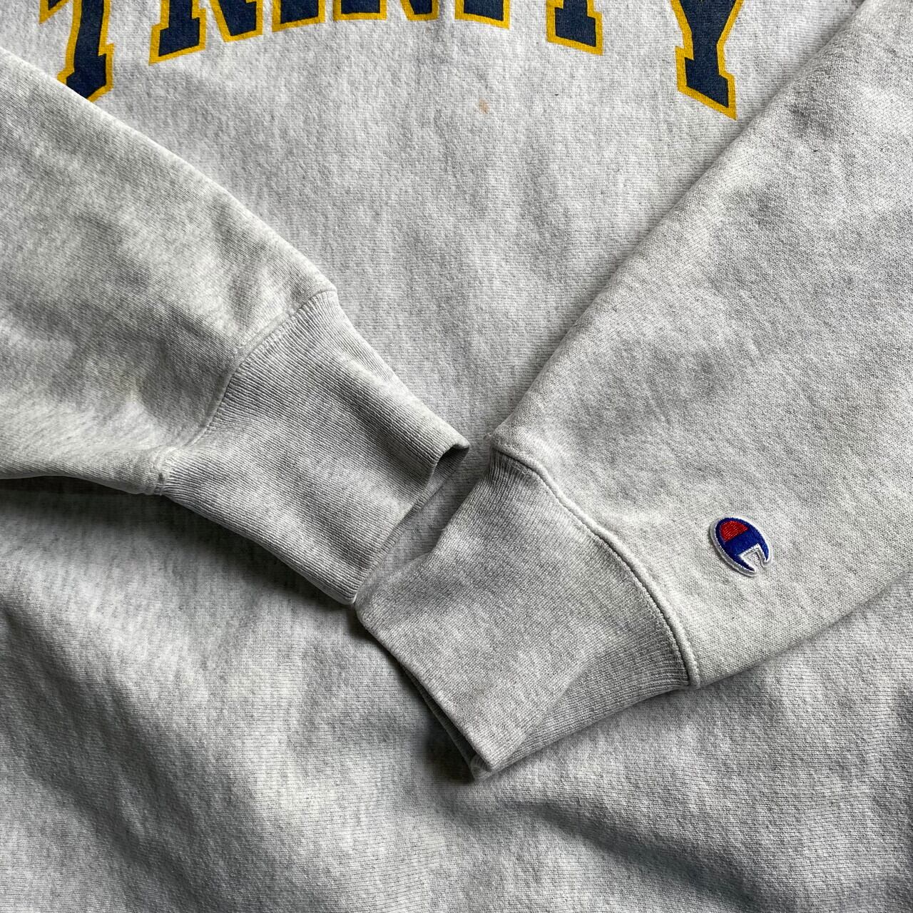 ■Champion チャンピオン カレッジロゴプリント リバースウィーブ メンズL 古着 単色タグ REVERSE WEAVE スウェット トレーナー ライトグレー 灰色 【スウェット】